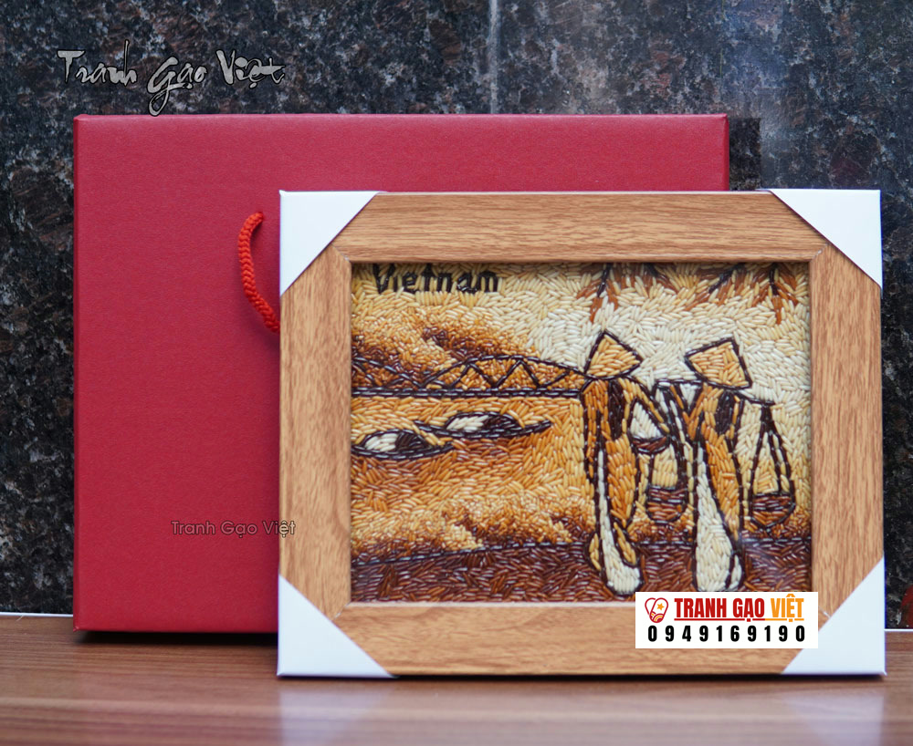 Tranh gạo phong cảnh áo dài cầu Tràng Tiền huế với kích thước nhỏ gọn để bàn làm việc làm món quà lưu niệm việt nam