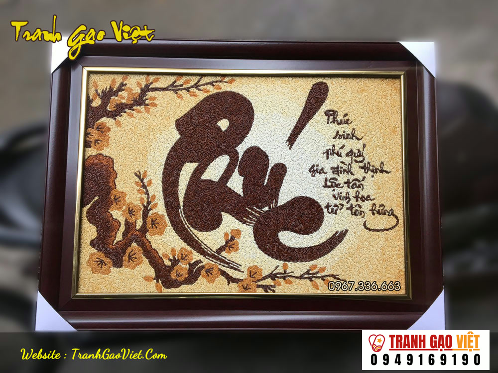 Tranh gạo chữ Phúc vừa giúp cho không gian trở nên đẹp hơn lại còn giúp mang may mắn, hạnh phúc, tài lộc cho chủ nhà. Bức tranh gạo chữ Phúc là một tác phẩm nghệ thuật đẹp và ý nghĩa mang tính nghệ thuật cao thích hợp treo trang trí hoặc làm quà tặng tân gia, quà tặng khai trương hoặc làm quà tặng cấp trên vào mỗi dịp năm mới.