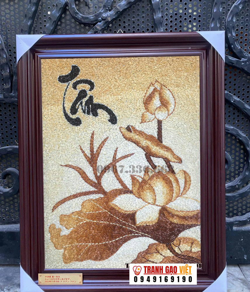 Tranh gạo Chữ Tâm hoa sen được nhiều khách hàng lựa chọn làm quà tặng thầy cô mang ý nghĩa sâu sắc.