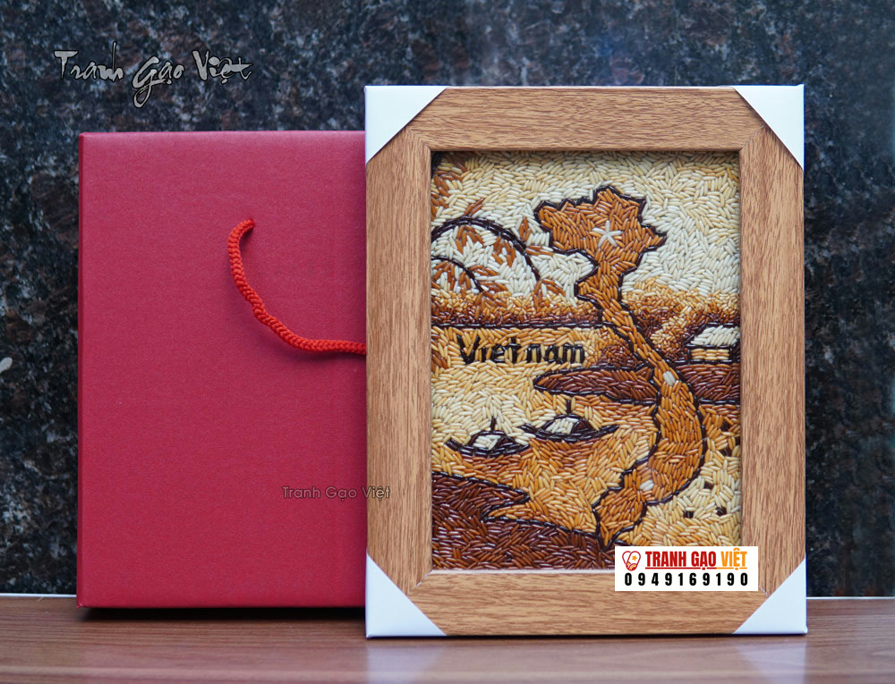 Tranh gạo bản đồ việt nam để bàn khổ nhỏ