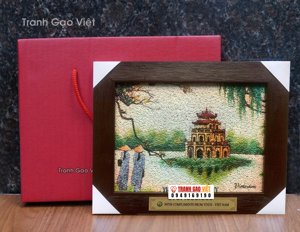 Tranh gạo Tháp Rùa là một trong những mẫu tranh đặc trưng về Việt Nam được khách hàng quan tâm nhiều nhất.