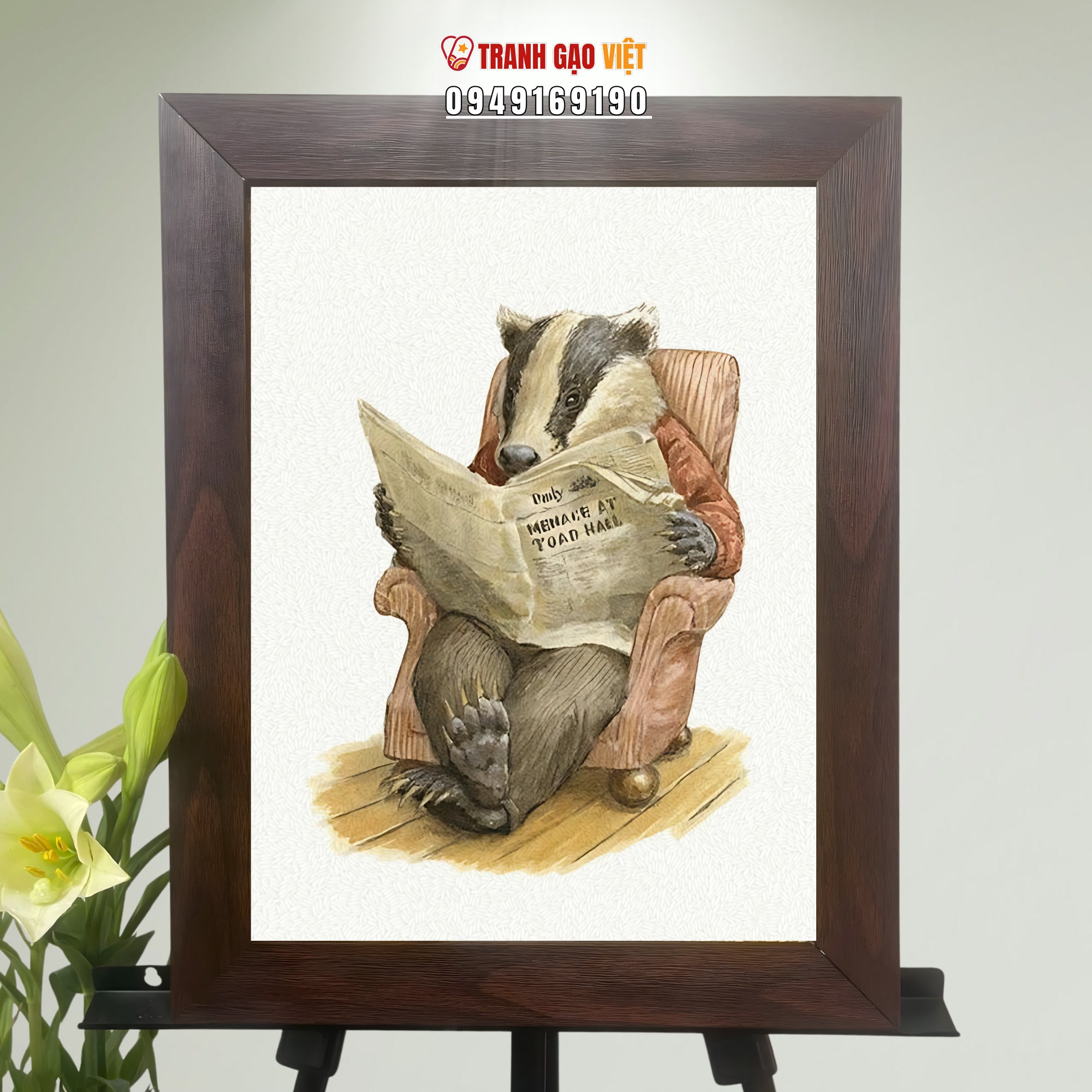 Tranh Gạo Cha Chồn Đọc Báo - Tranh Nghệ Thuật - Tranh Tặng Quà - Tranh Thủ Công