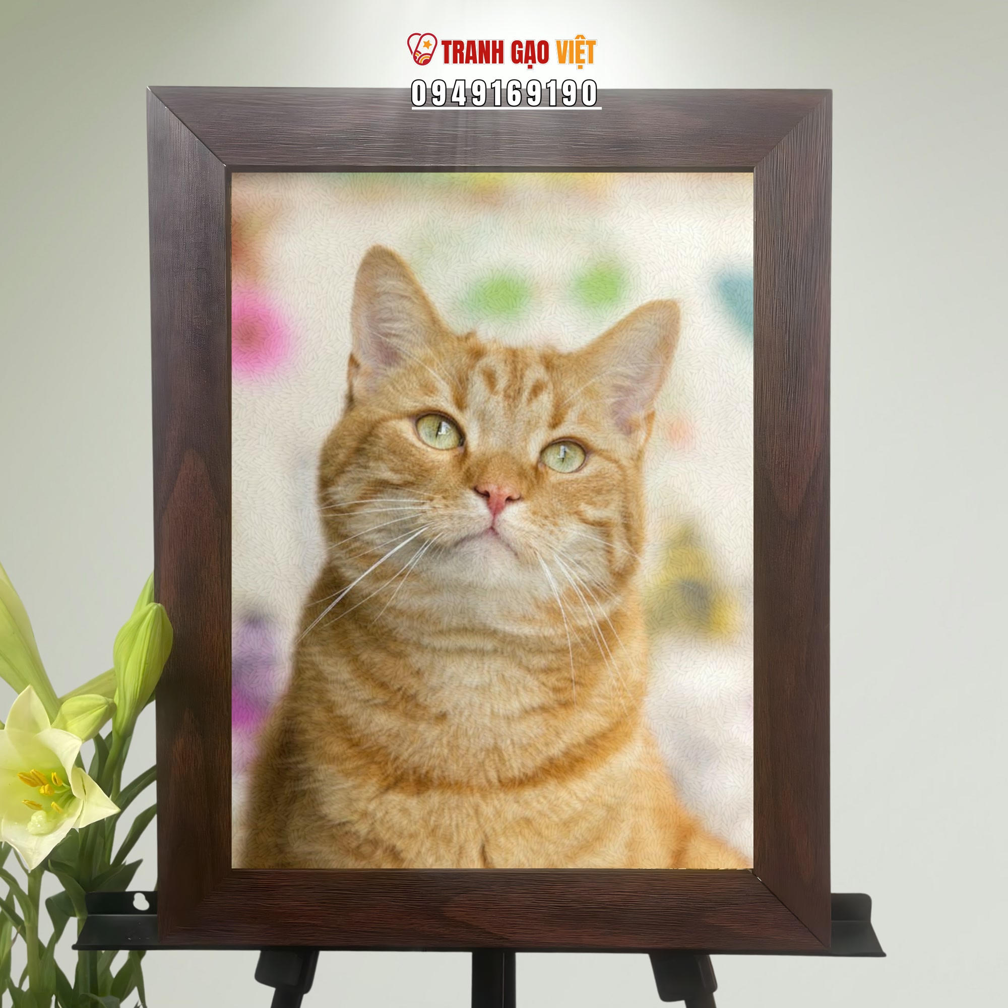 Tranh Gạo Chân Dung Mèo Vàng - Tranh Nghệ Thuật - Tranh Tặng Quà - Tranh Thủ Công