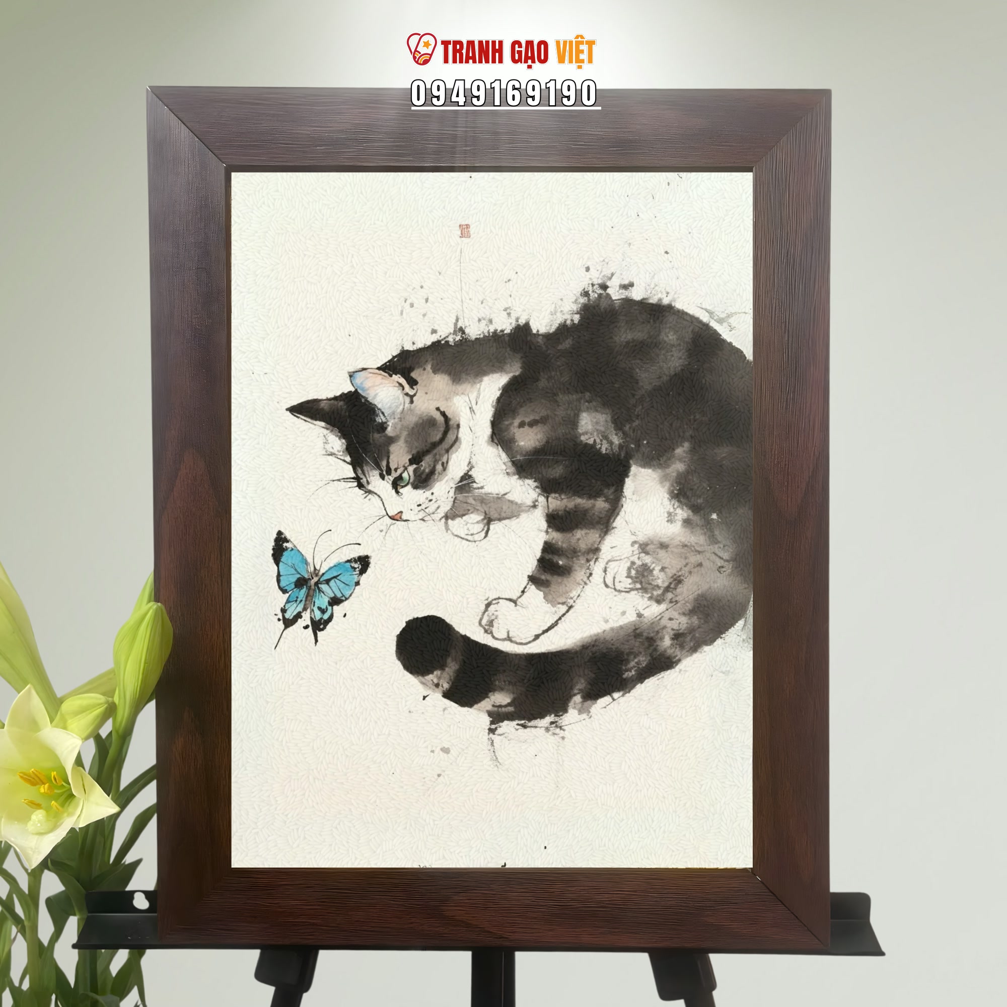 Tranh Gạo Chàng Mèo và Nàng Bướm - Tranh Nghệ Thuật - Tranh Tặng Quà - Tranh Thủ Công