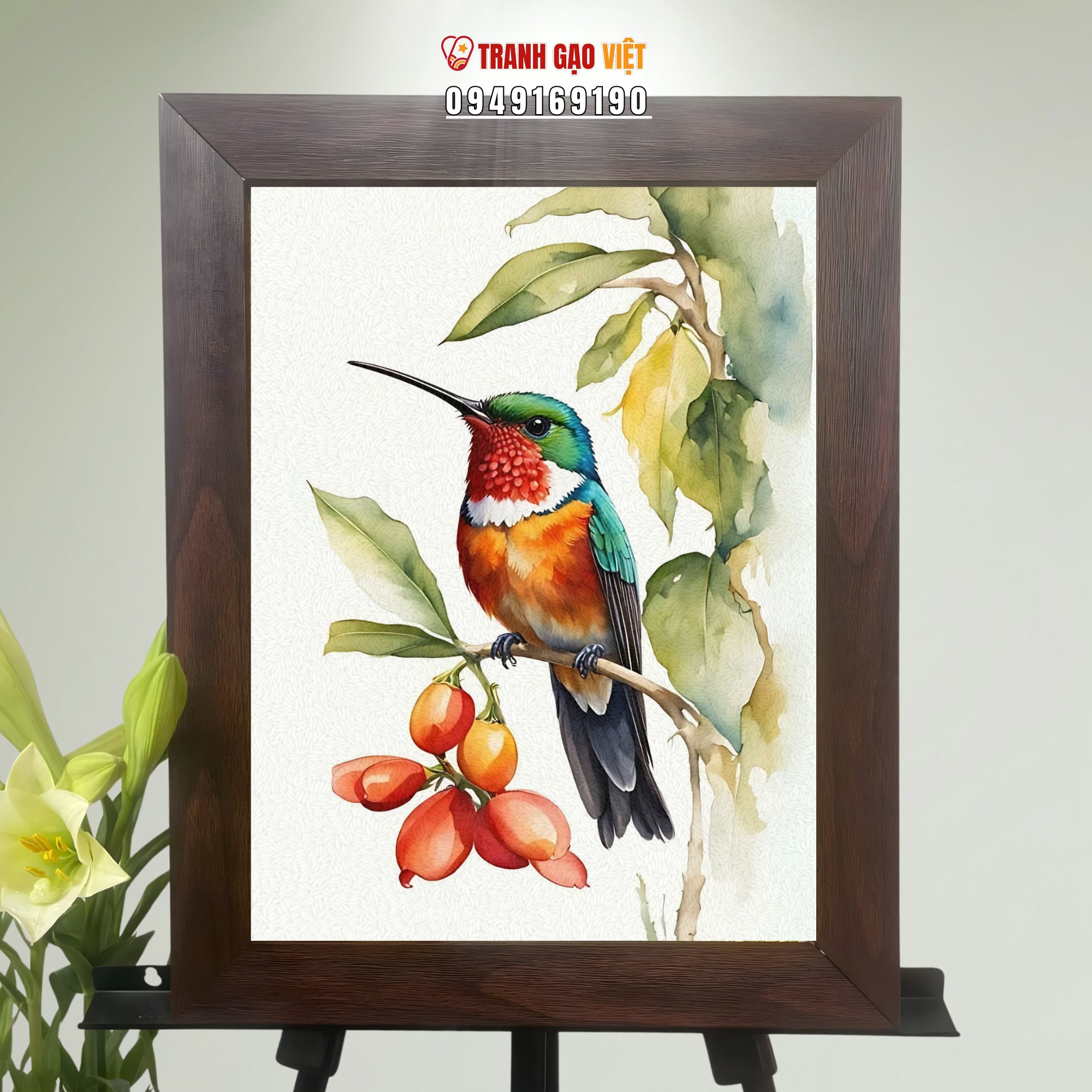 Tranh Gạo Chim Ăn Mật - Tranh Nghệ Thuật - Tranh Tặng Quà - Tranh Thủ Công