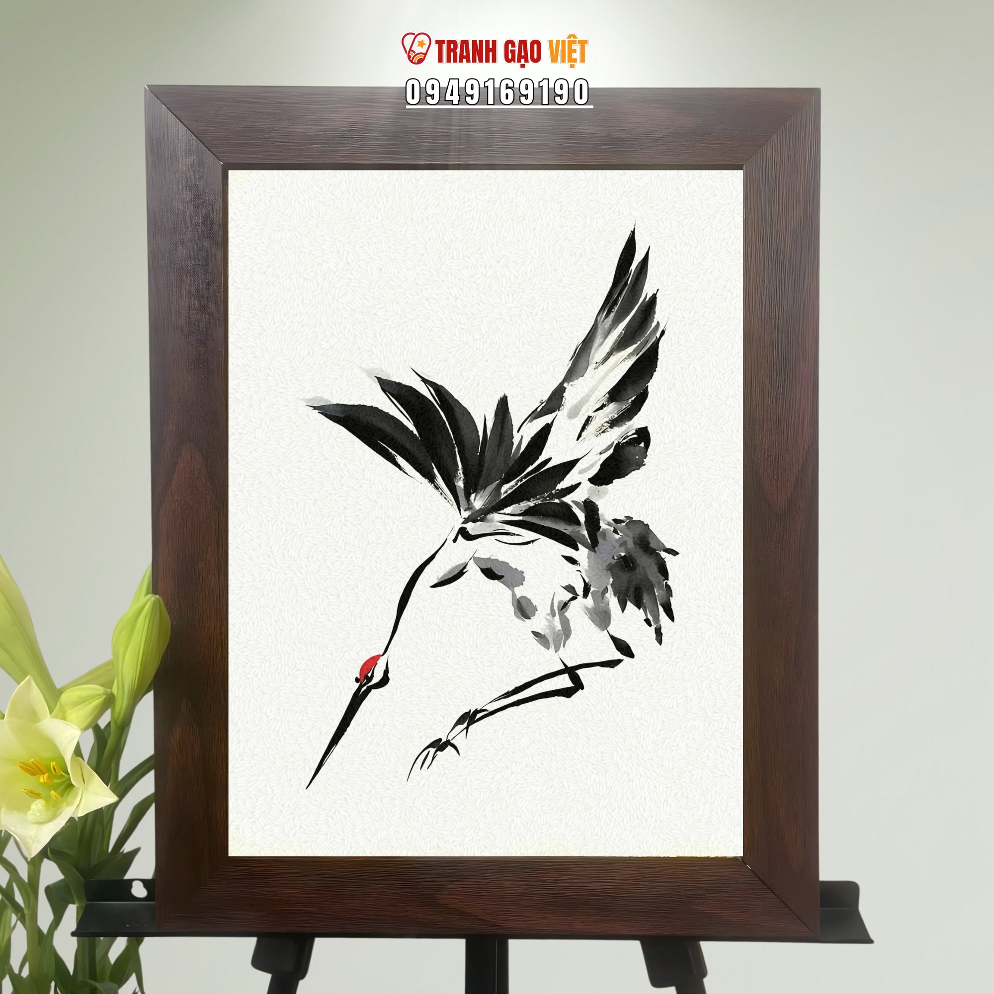 Tranh Gạo Chim Hạc Bắt Mồi - Tranh Nghệ Thuật - Tranh Tặng Quà - Tranh Thủ Công