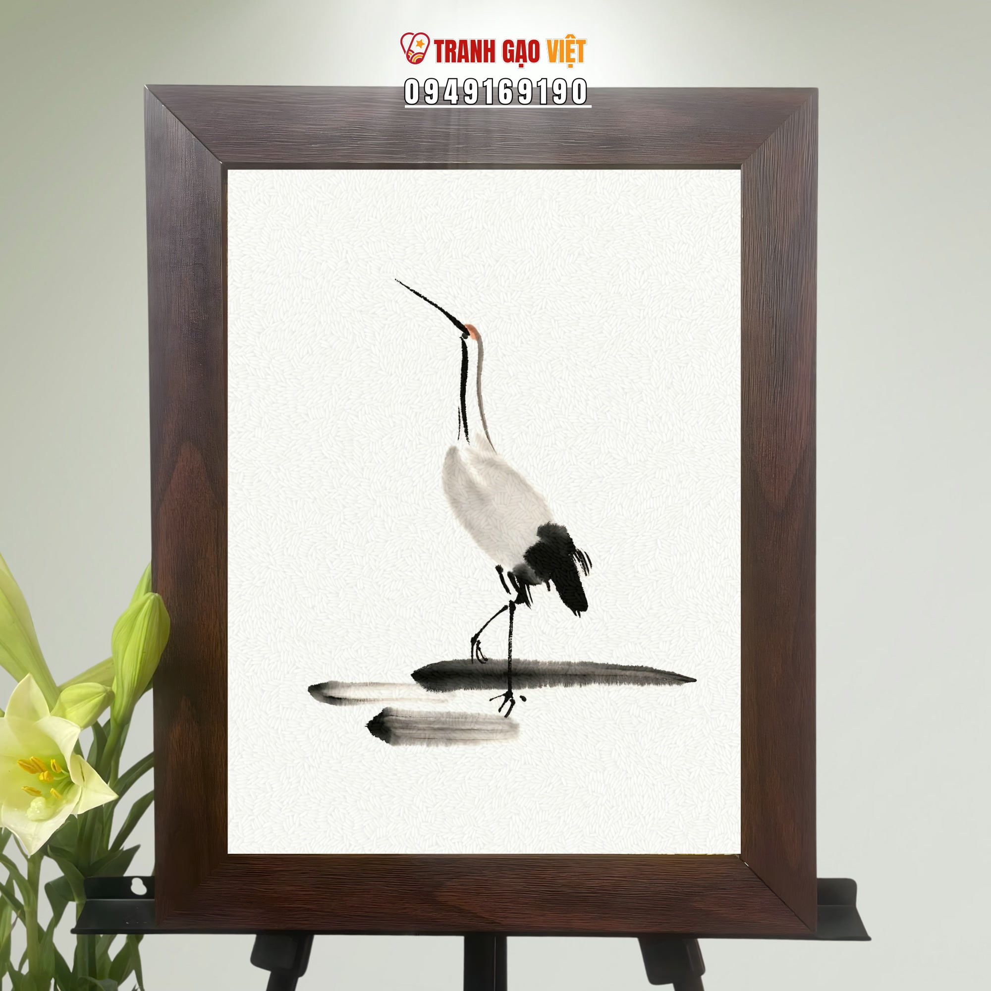 Tranh Gạo Chim Hạc Thưởng Trăng - Tranh Nghệ Thuật - Tranh Tặng Quà - Tranh Thủ Công