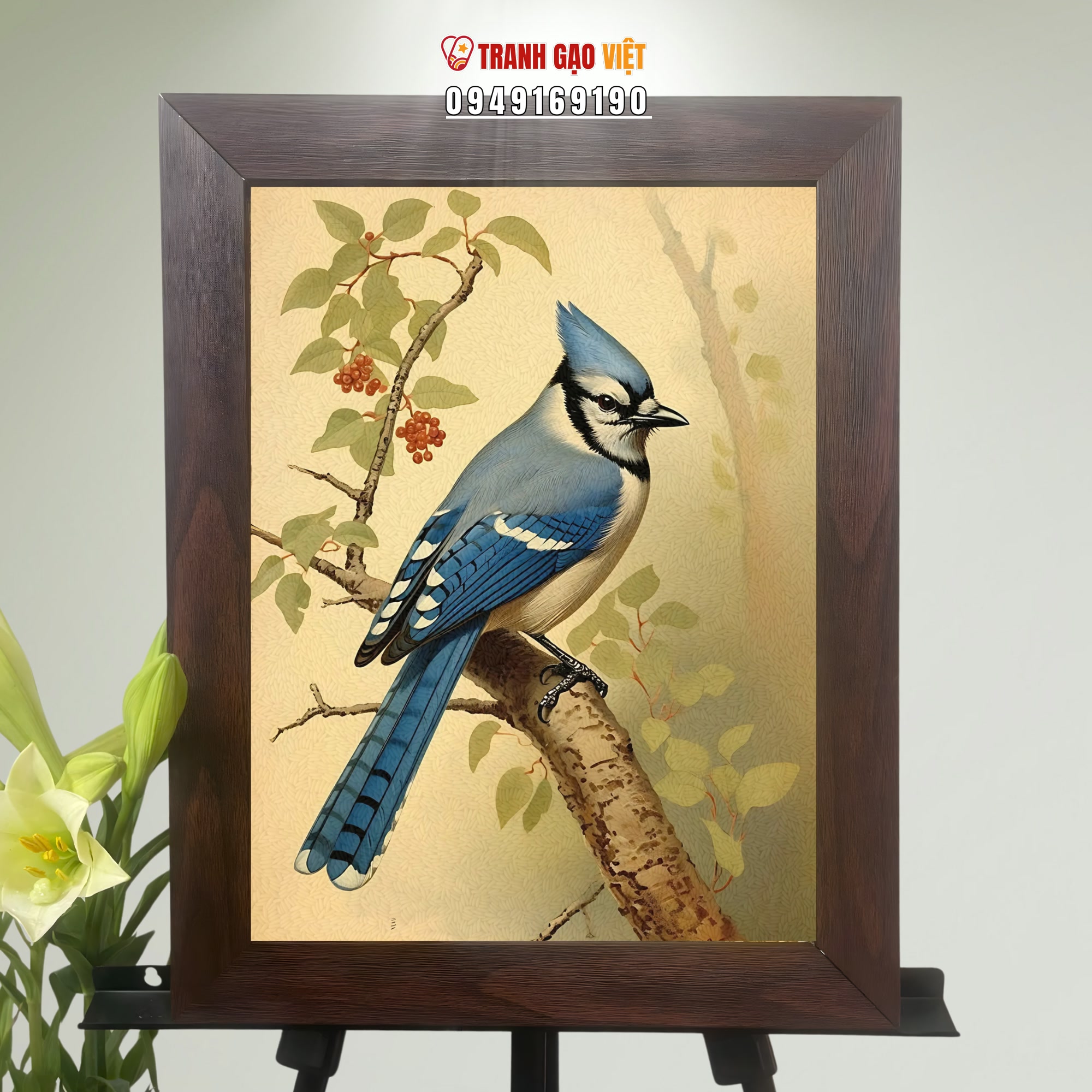 Tranh Gạo Chim Xanh Trong Rừng - Tranh Nghệ Thuật - Tranh Tặng Quà - Tranh Thủ Công