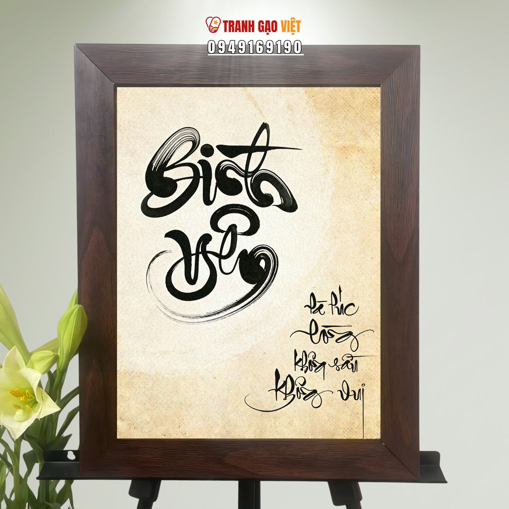 Tranh Gạo Chữ Bình Yên Không Buồn Vui - Tranh Nghệ Thuật - Tranh Tặng Quà - Tranh Thủ Công