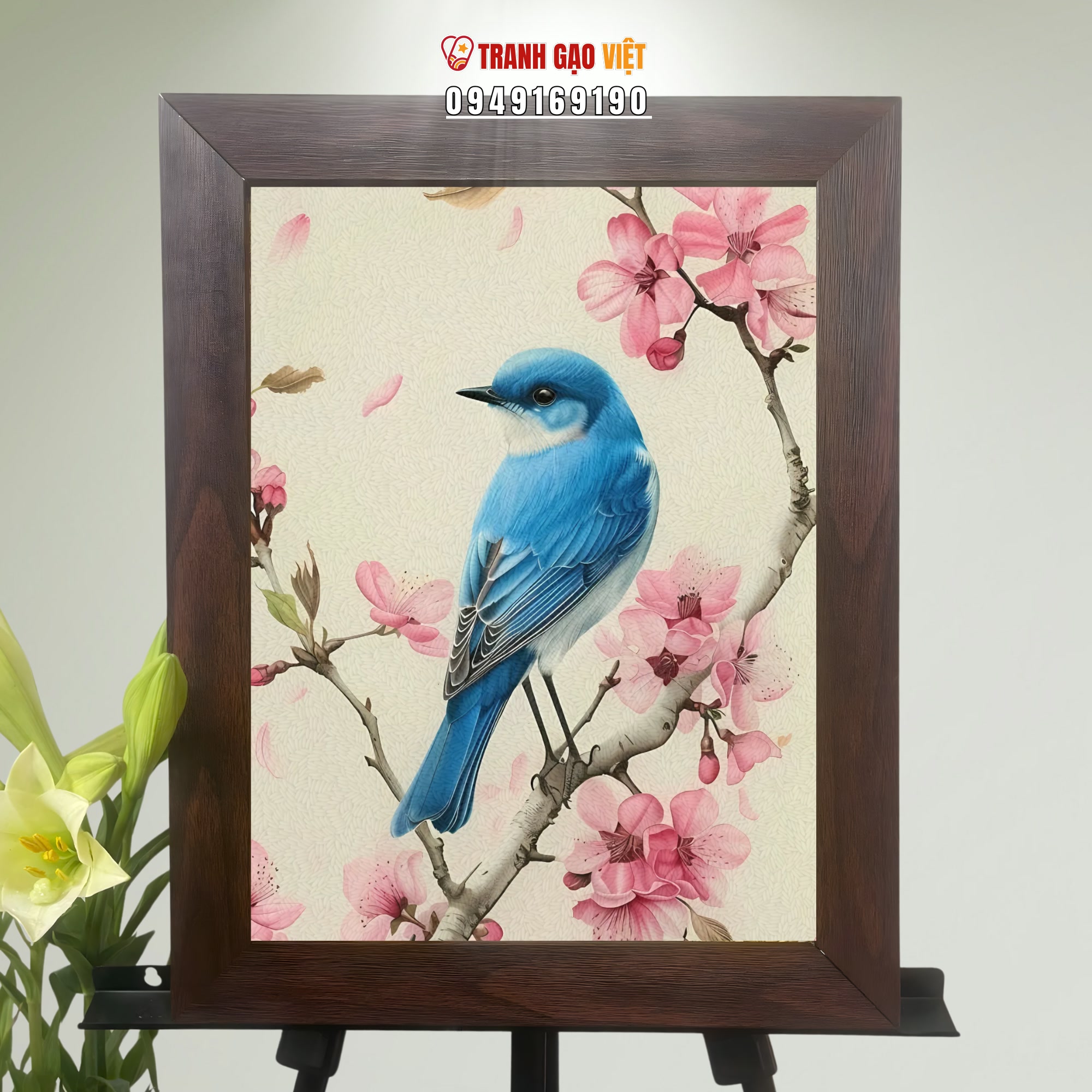 Tranh Gạo Chú Chim Xanh - Tranh Nghệ Thuật - Tranh Tặng Quà - Tranh Thủ Công
