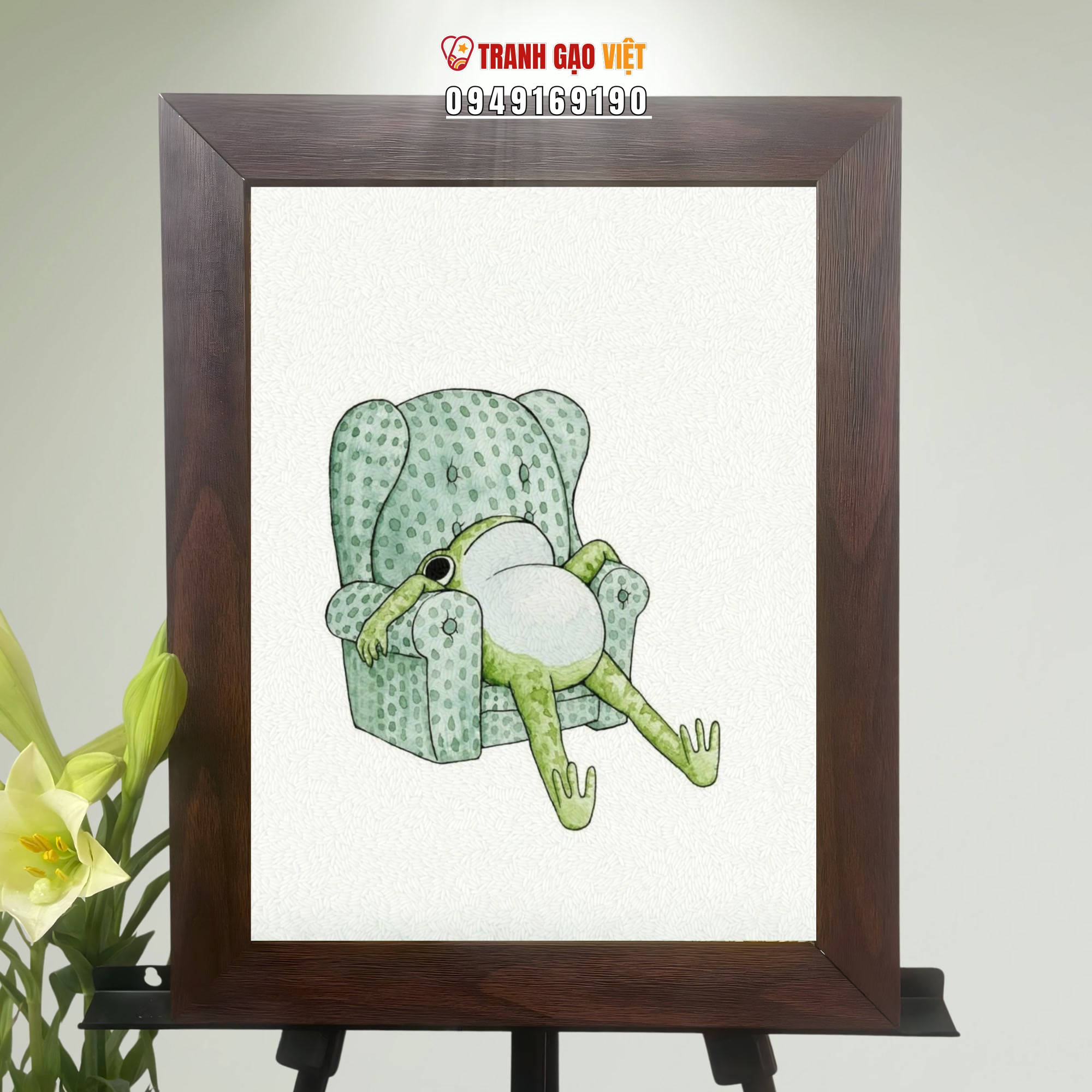 Tranh Gạo Chú Ếch Mệt Mỏi - Tranh Nghệ Thuật - Tranh Tặng Quà - Tranh Thủ Công