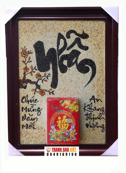 Tranh gạo chữ nhẫn, tranh thư pháp được làm từ hạt gạo