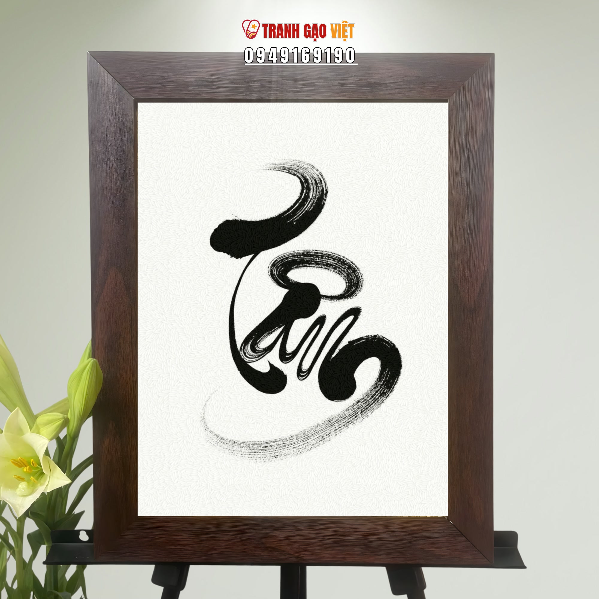 Tranh Gạo Chữ Tâm - Tranh Nghệ Thuật - Tranh Tặng Quà - Tranh Thủ Công