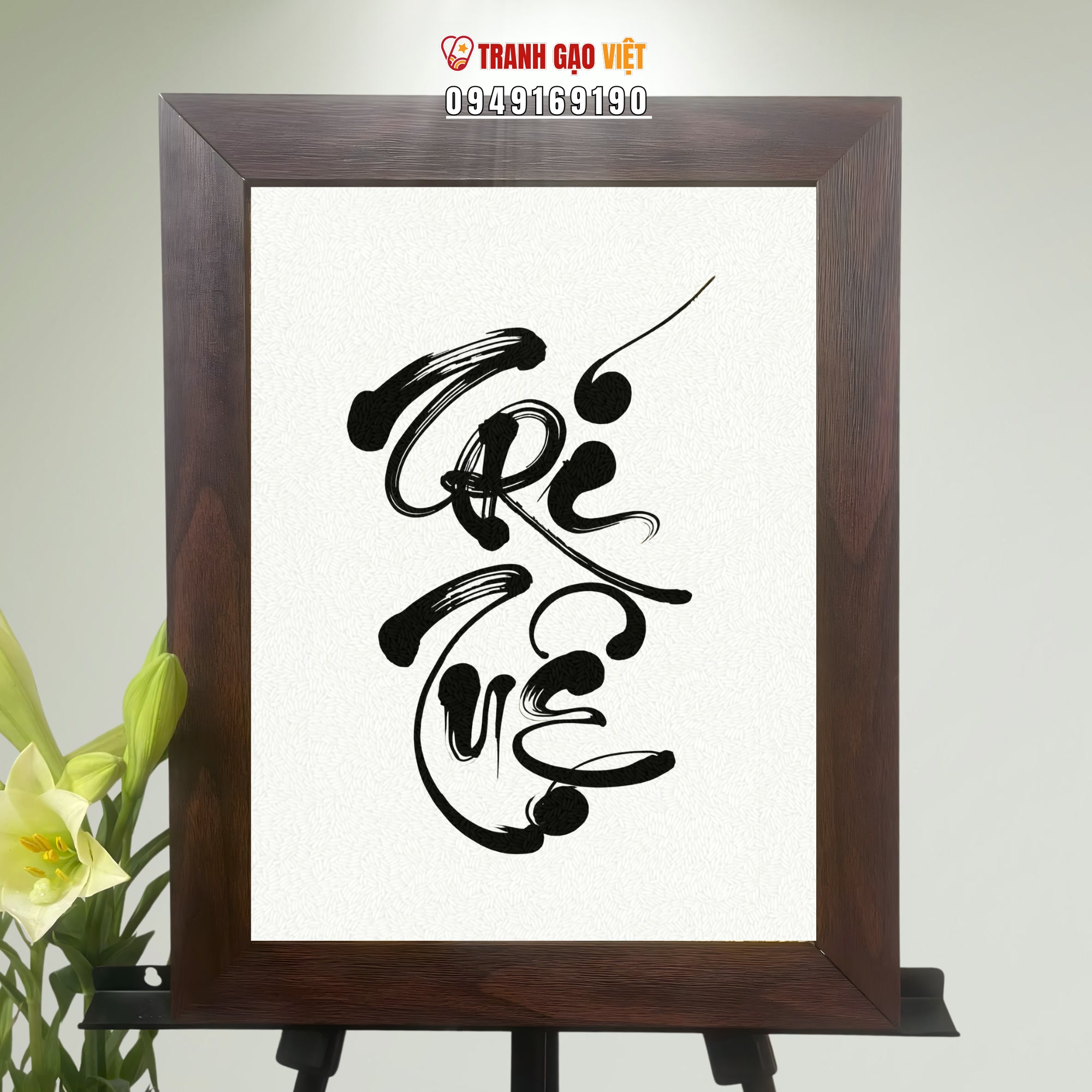 Tranh Gạo Chữ Trí Tuệ - Tranh Nghệ Thuật - Tranh Tặng Quà - Tranh Thủ Công
