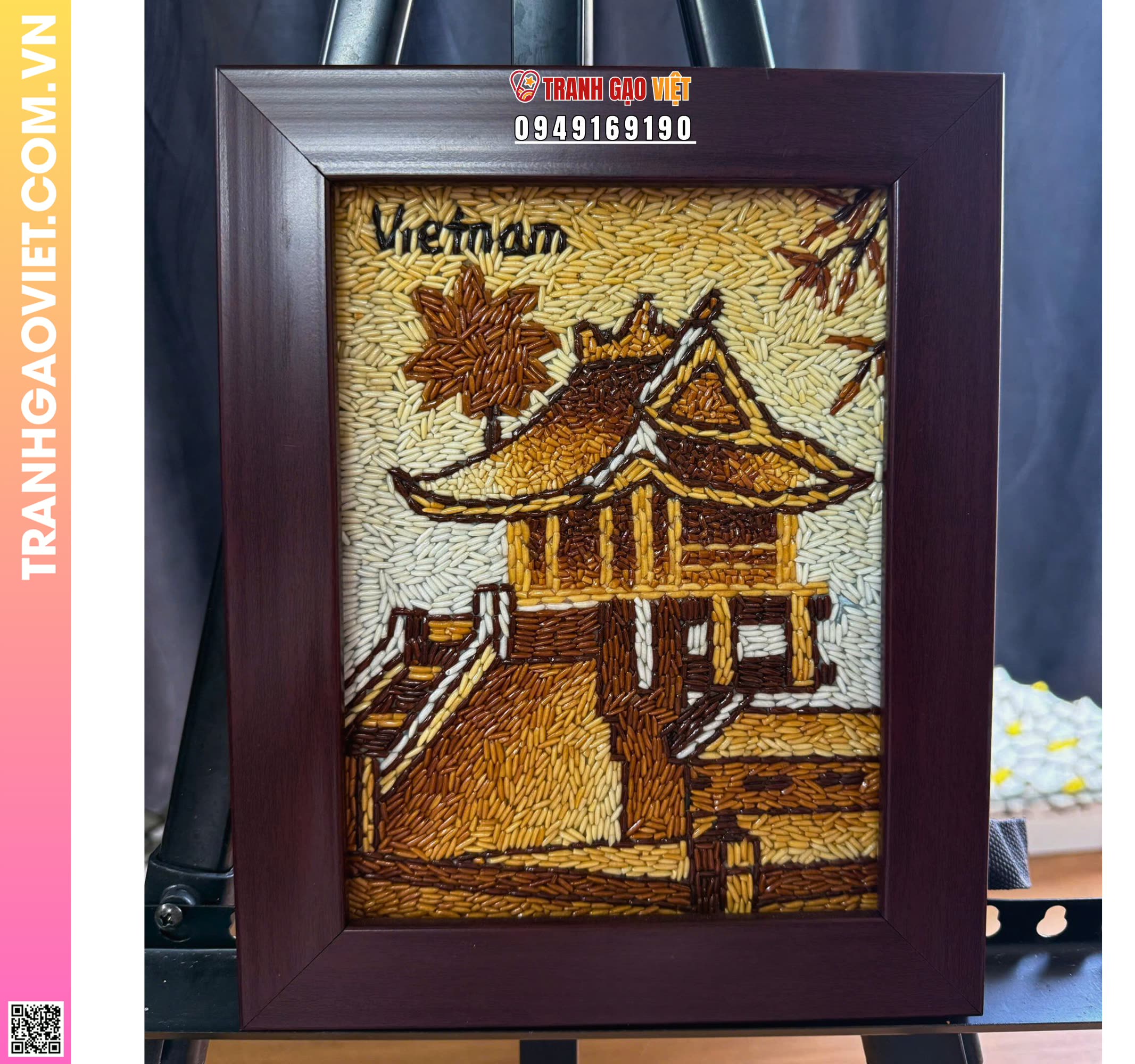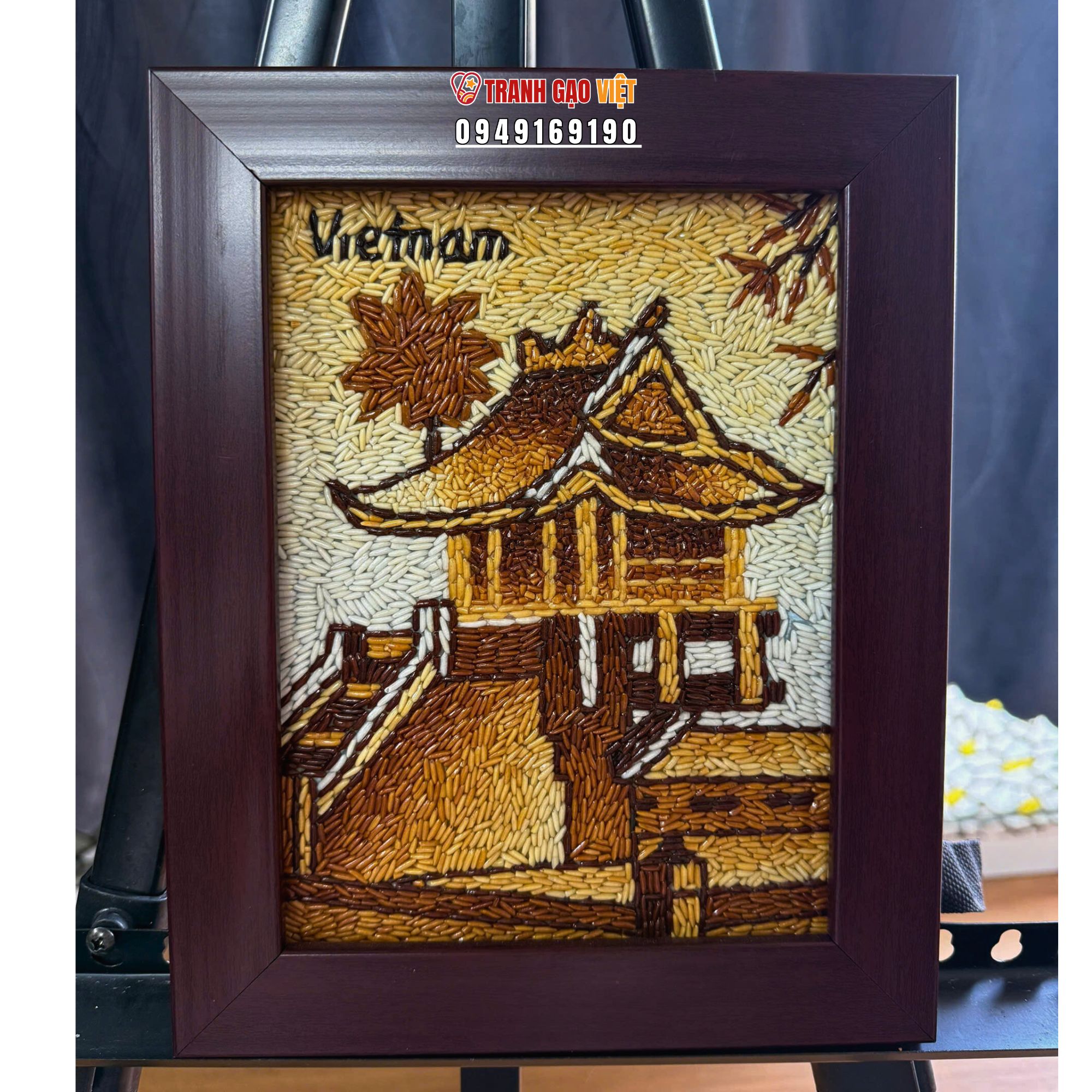 Ảnh thực tế sản phẩm Tranh Gạo Tranh Gạo Chùa Một Cột bản dọc để bàn
