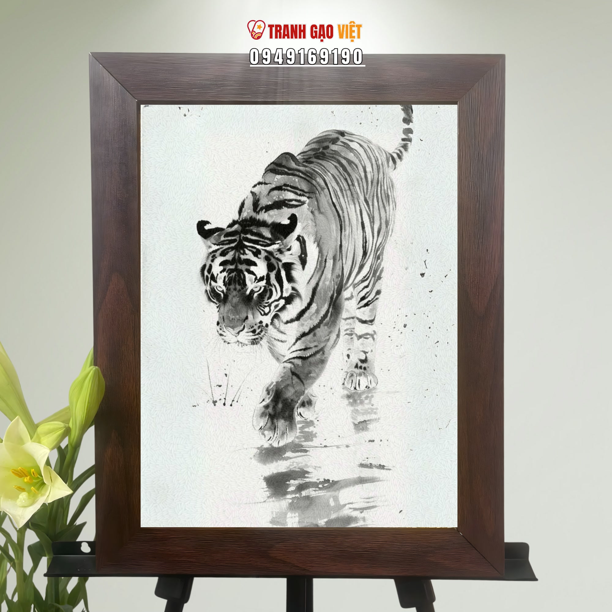 Tranh gạo Việt | Chúa Tể Sơn Lâm khắc hoạ vẻ đẹp hùng vĩ của núi rừng, biểu tượng của sức mạnh và sự kiên cường của thiên nhiên. Với hình ảnh sống động và đầy cảm hứng, tranh mang đến cho người xem cảm giác gần gũi với vẻ đẹp hoang sơ và thơ mộng của núi rừng Việt Nam.