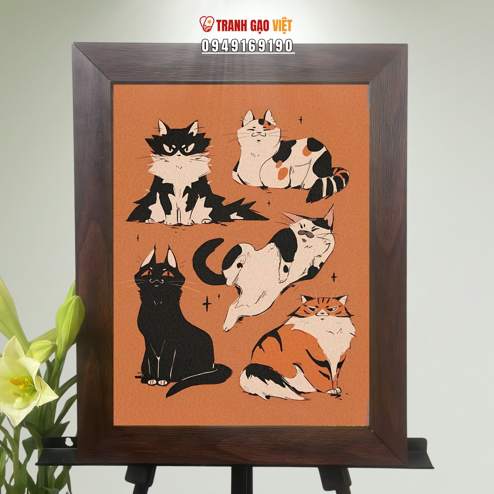 Tranh Gạo Dáng Mèo - Tranh Nghệ Thuật - Tranh Tặng Quà - Tranh Thủ Công