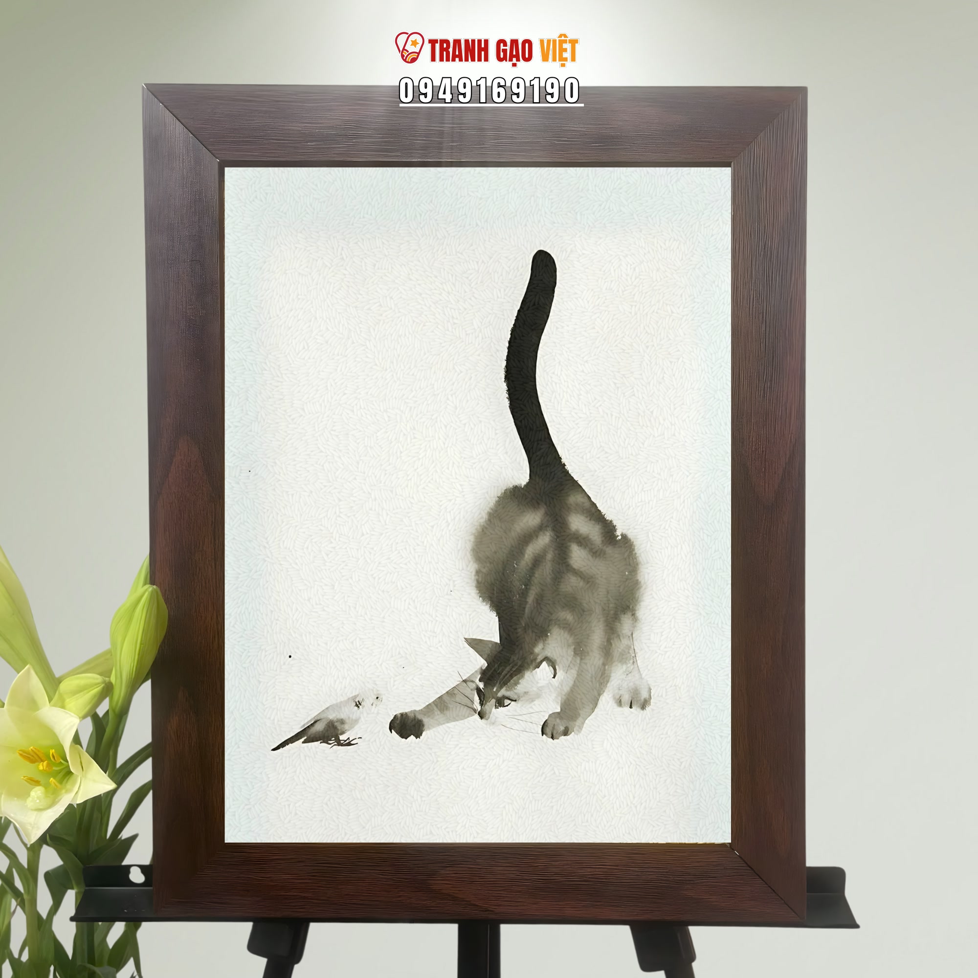 Tranh Gạo Đôi Bạn Vẹt và Mèo - Tranh Nghệ Thuật - Tranh Tặng Quà - Tranh Thủ Công