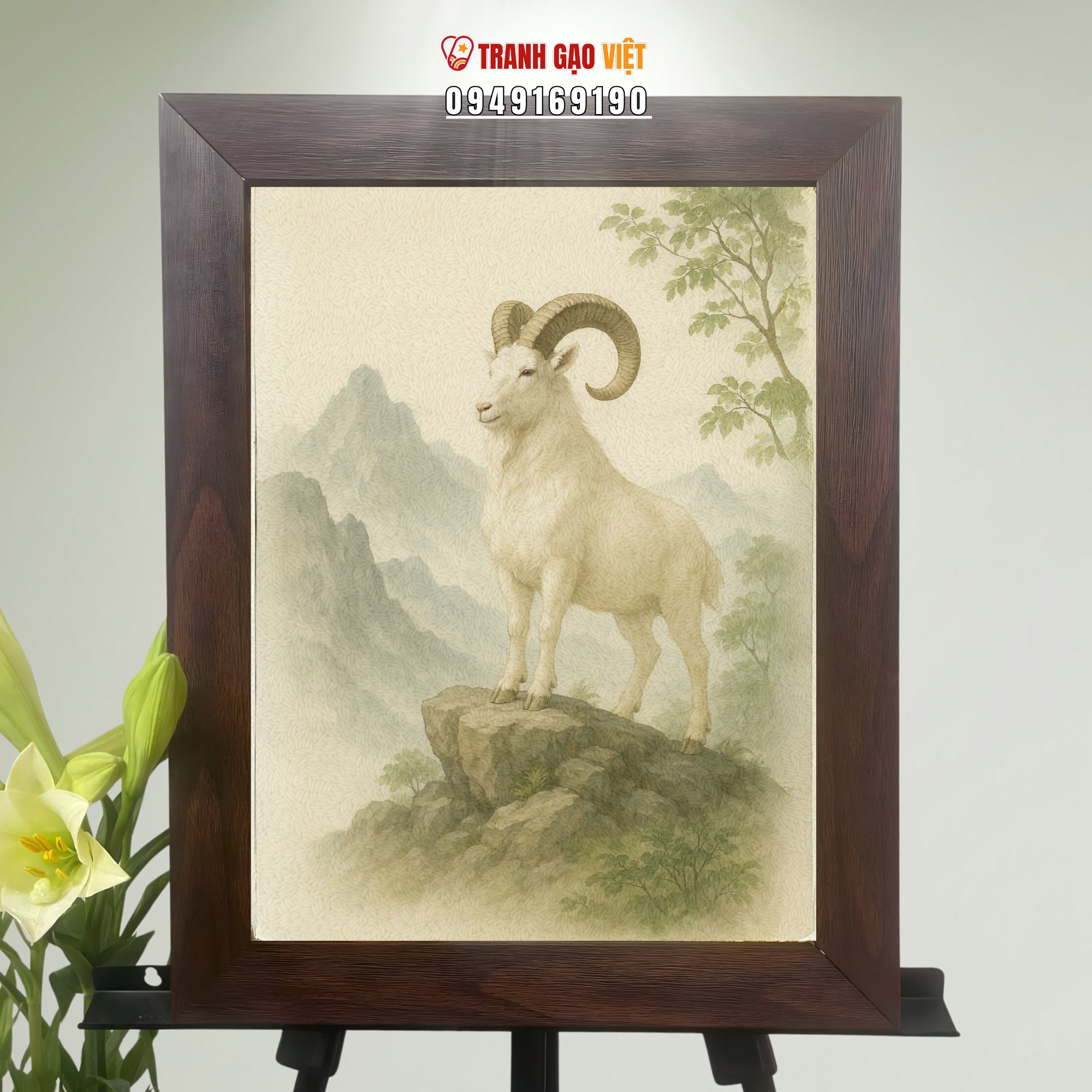 Tranh Gạo Hiên Ngang Chàng Dê Núi - Tranh Nghệ Thuật - Tranh Tặng Quà - Tranh Thủ Công