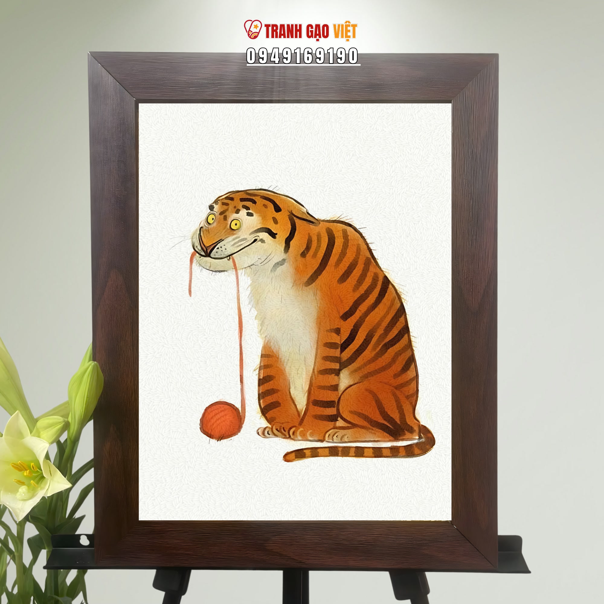 Tranh Gạo Hổ Ngổ Nghĩnh - Tranh Nghệ Thuật - Tranh Tặng Quà - Tranh Thủ Công