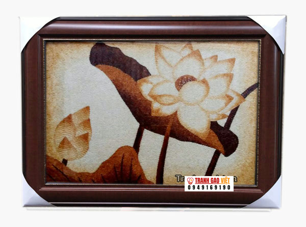 Bức tranh hoa sen được làm bằng gạo mang đậm dấu ấn quê hương việt nam