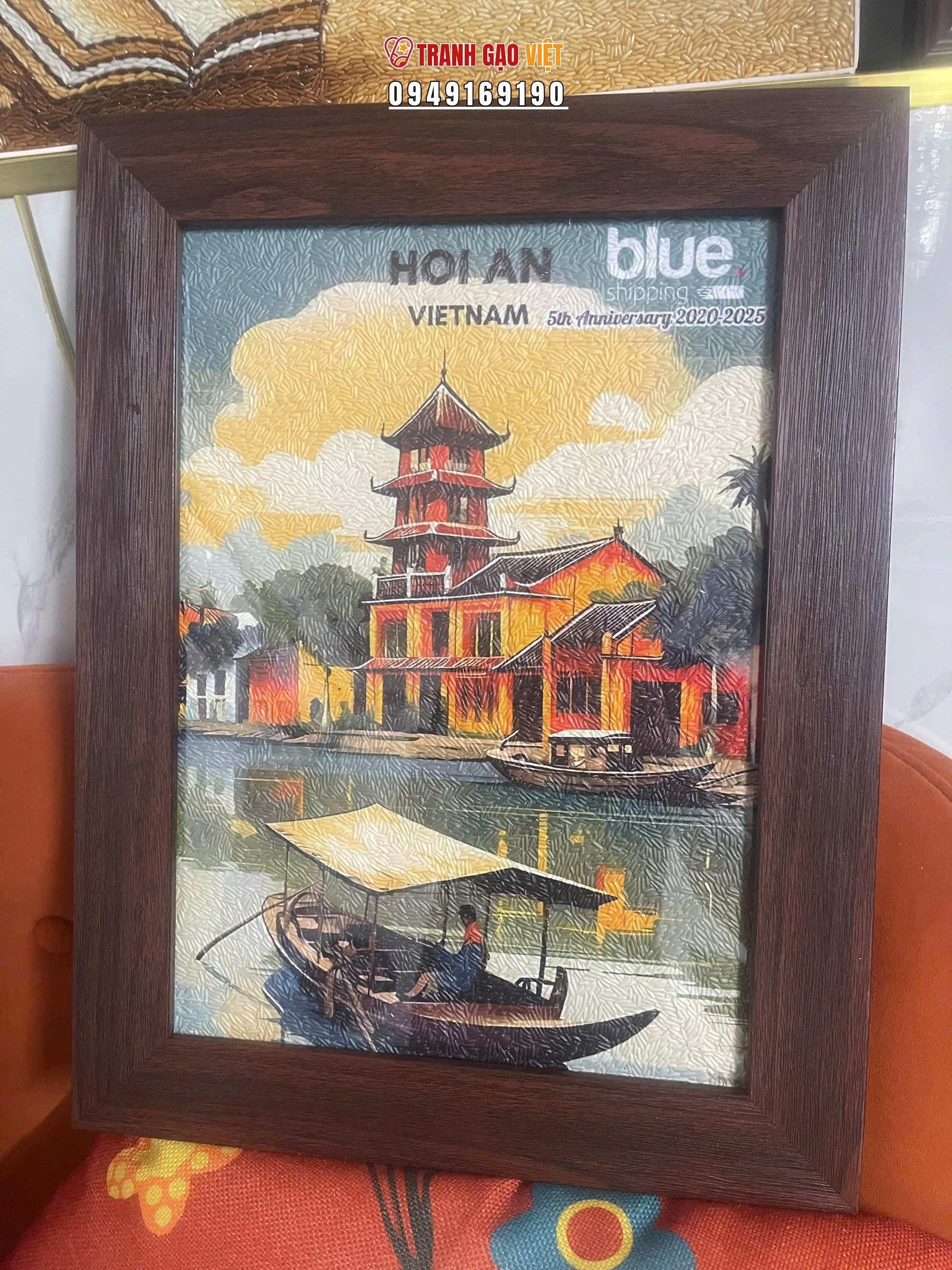 Tranh gạo màu cảnh đẹp Hôi An là bức tranh gạo màu sống động về vẻ đẹp của Hội An trong mắt của du khách quốc tế.