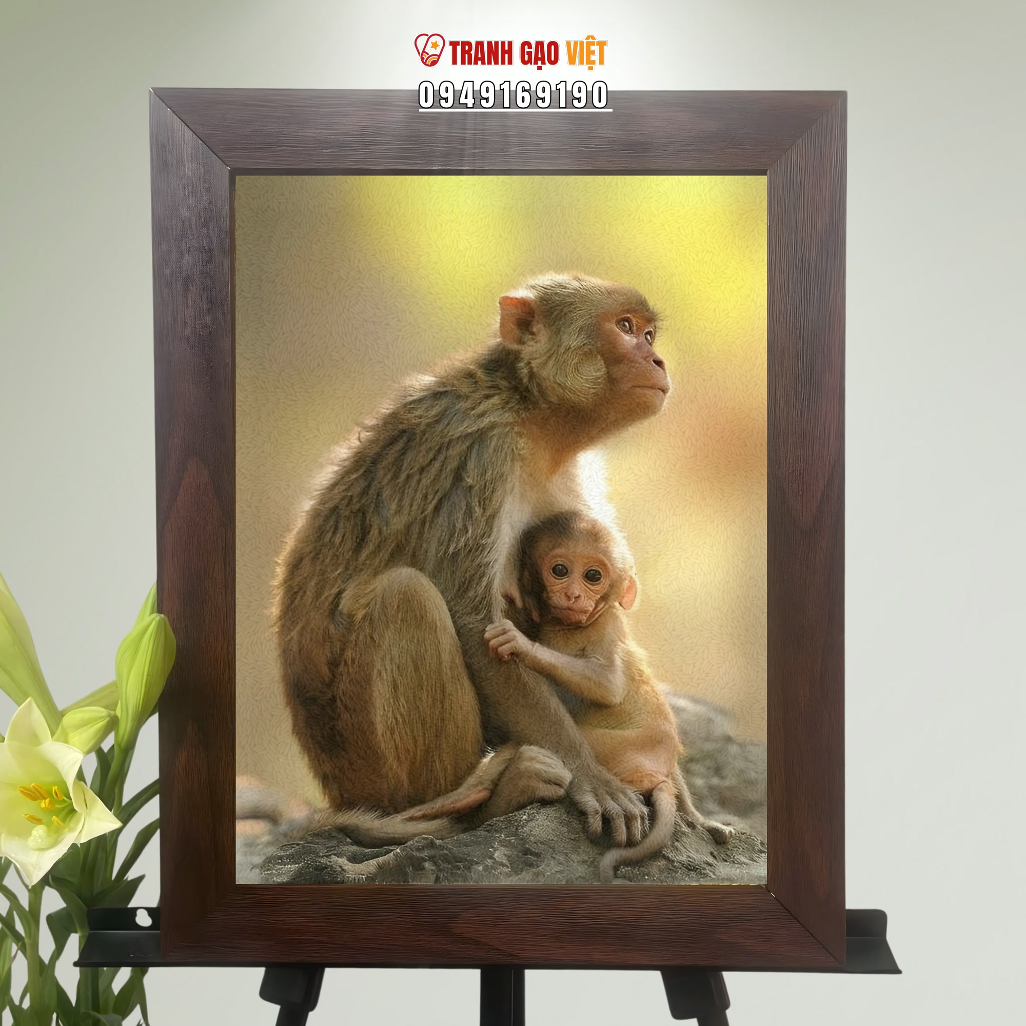 Tranh Gạo Khỉ Mẹ và Con - Tranh Nghệ Thuật - Tranh Tặng Quà - Tranh Thủ Công