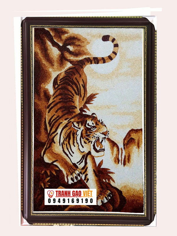 Tranh gạo con hổ, tranh do khách hàng tại Hải Phòng đặt Tranh Vạo Việt làm để treo trong cửa hàng của mình.