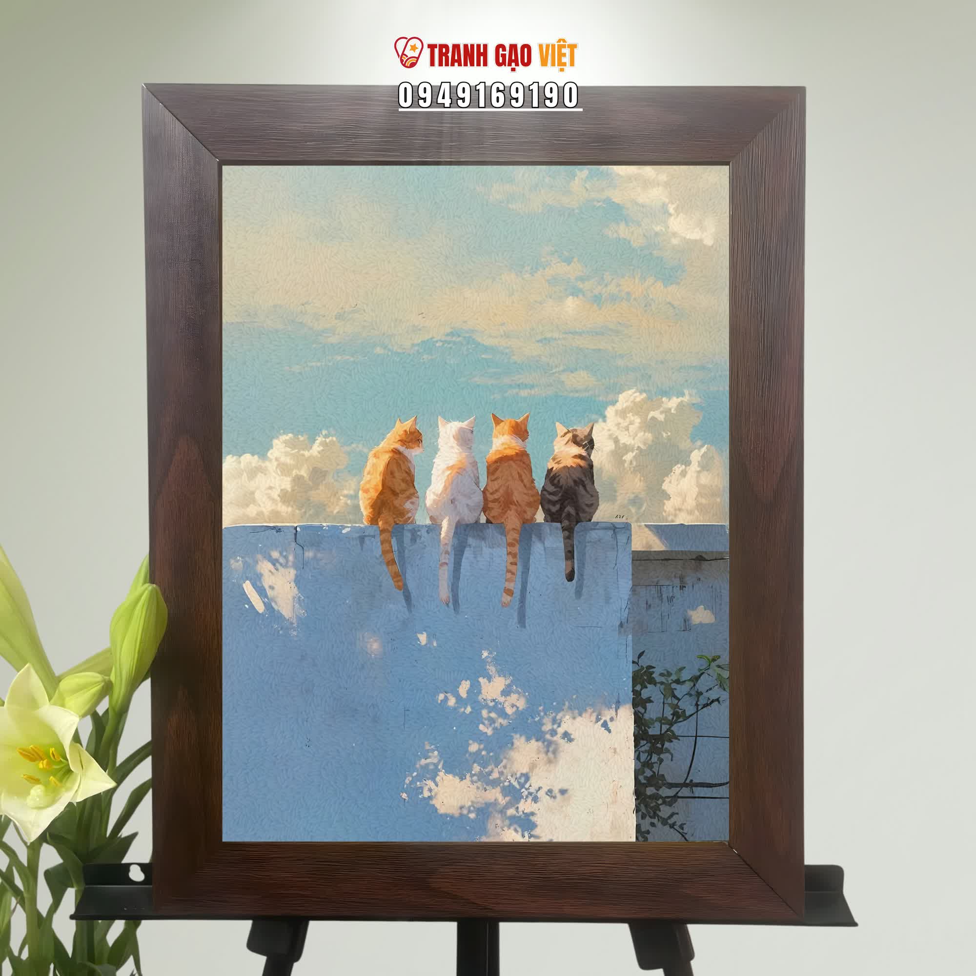 Tranh Gạo 4 Chú Mèo - Tranh Nghệ Thuật - Tranh Tặng Quà - Tranh Thủ Công