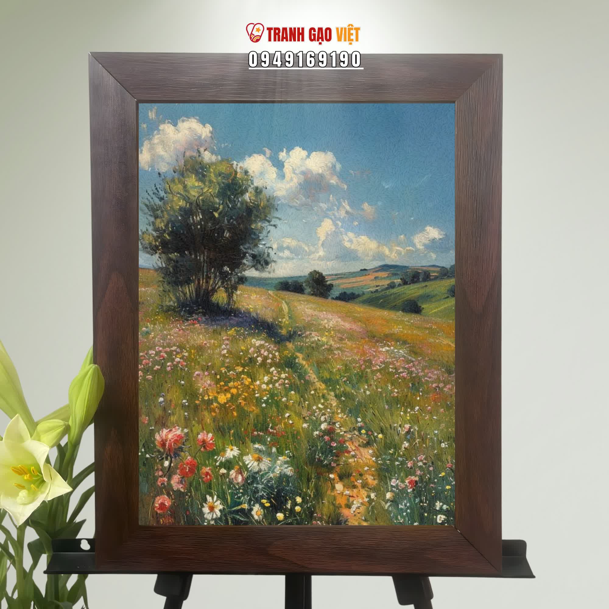 Tranh Gạo Cánh Đồng Hoa - Tranh Nghệ Thuật - Tranh Tặng Quà - Tranh Thủ Công