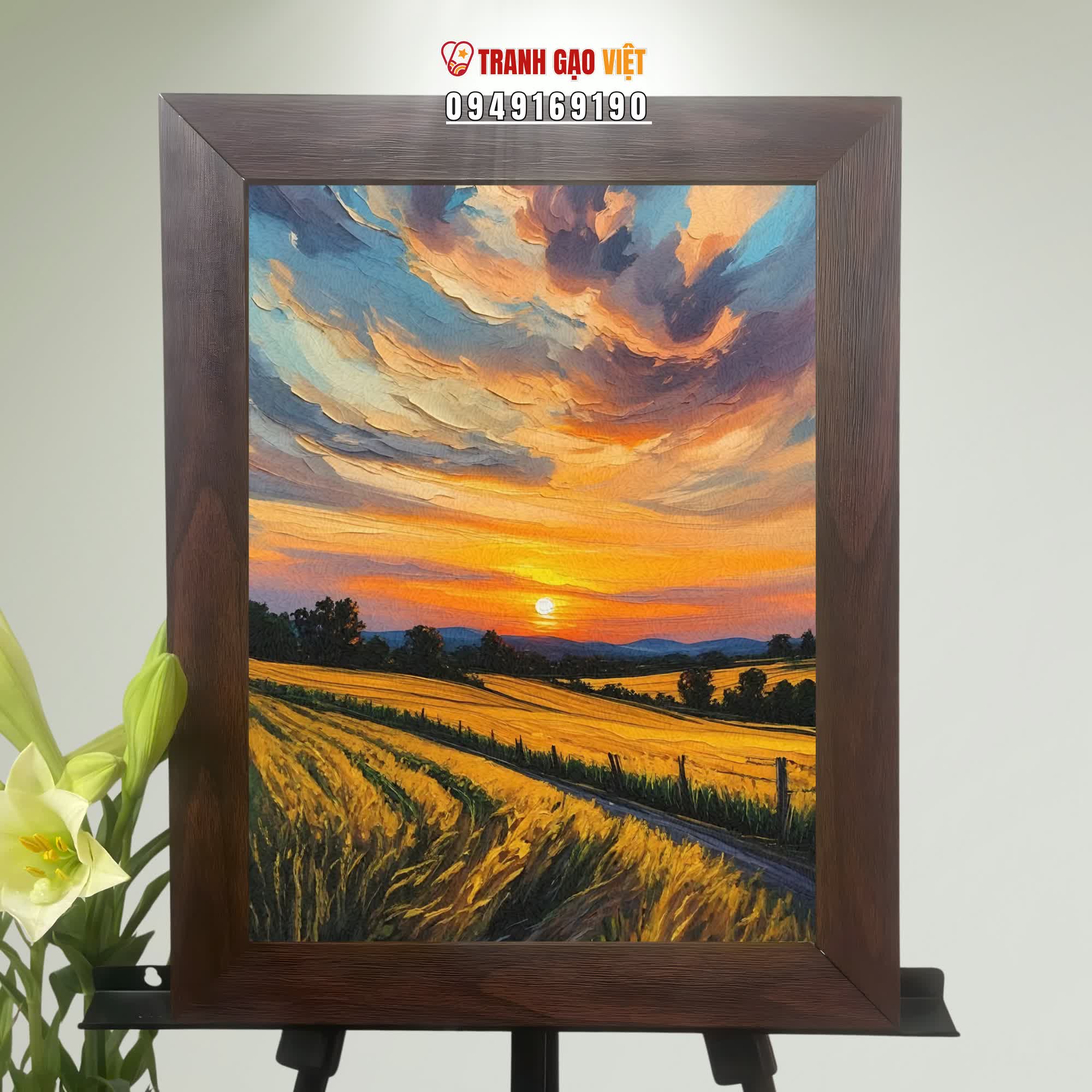 Tranh Gạo Cánh Đồng Hoàng Hôn - Tranh Nghệ Thuật - Tranh Tặng Quà - Tranh Thủ Công