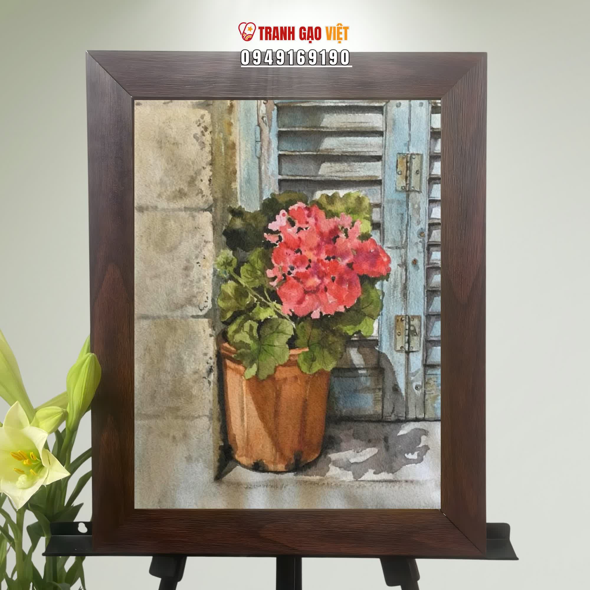 Tranh Gạo Chậu Cây Bên Cửa Sổ - Tranh Nghệ Thuật - Tranh Tặng Quà - Tranh Thủ Công