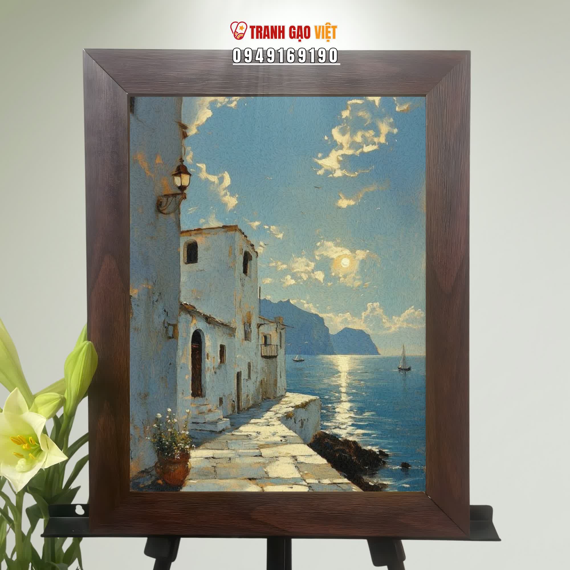 Tranh Gạo Con Đường Bên Bến - Tranh Nghệ Thuật - Tranh Tặng Quà - Tranh Thủ Công