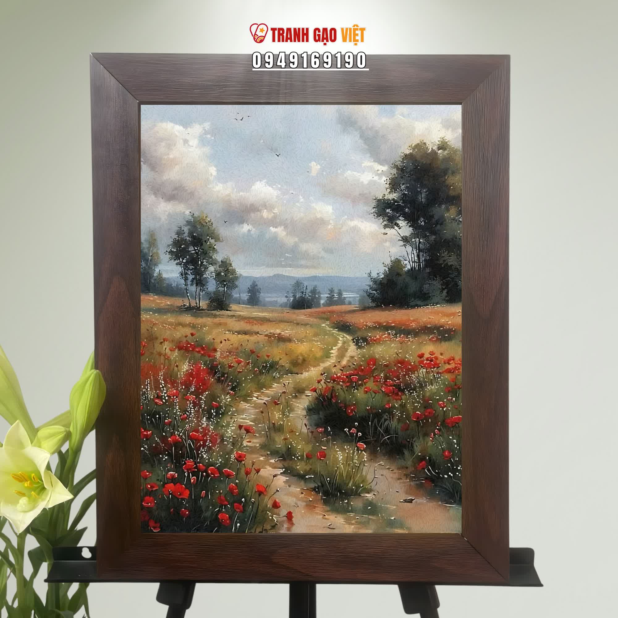 Tranh Gạo Con Đường Hoa - Tranh Nghệ Thuật - Tranh Tặng Quà - Tranh Thủ Công