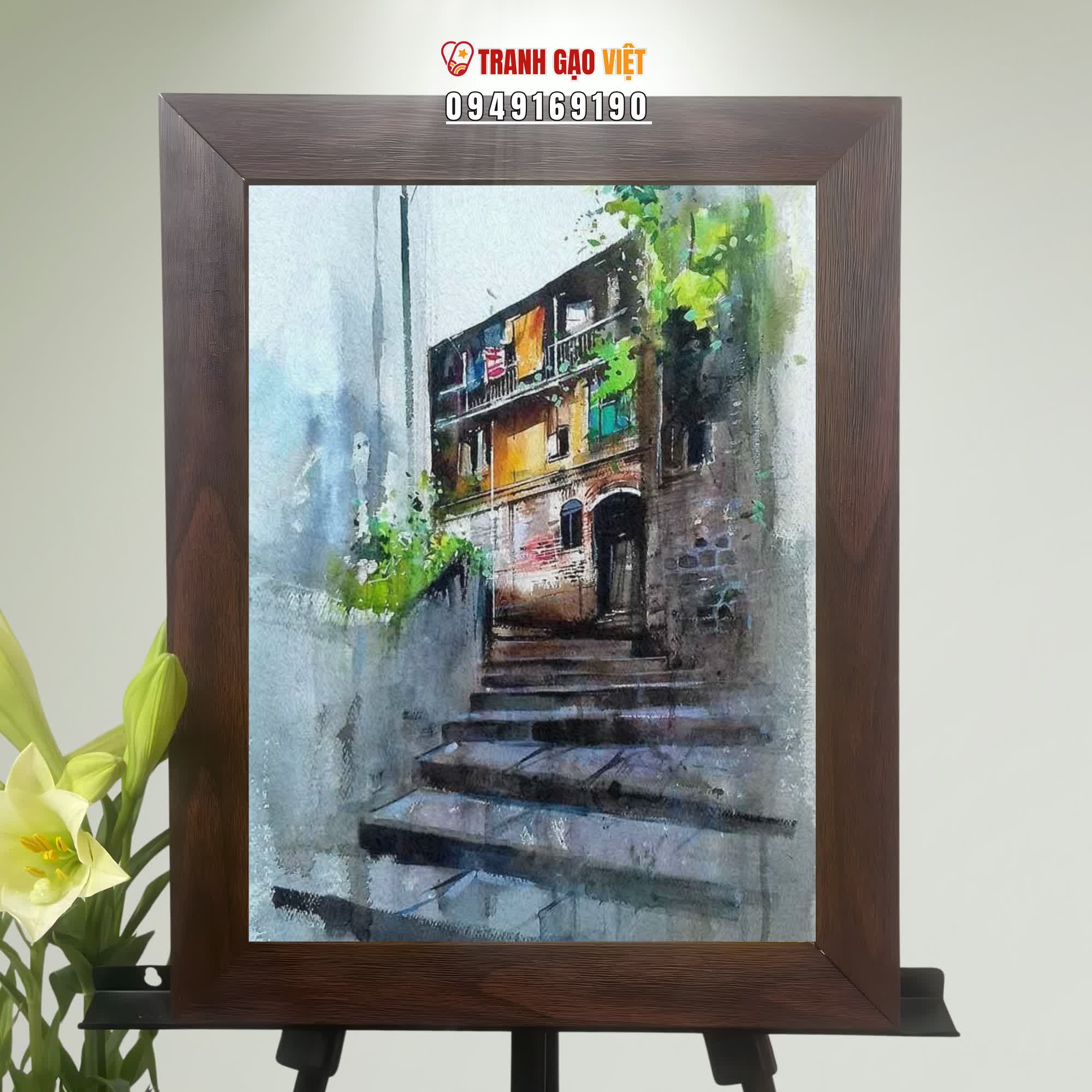 Tranh Gạo Dốc Ngõ - Tranh Nghệ Thuật - Tranh Tặng Quà - Tranh Thủ Công