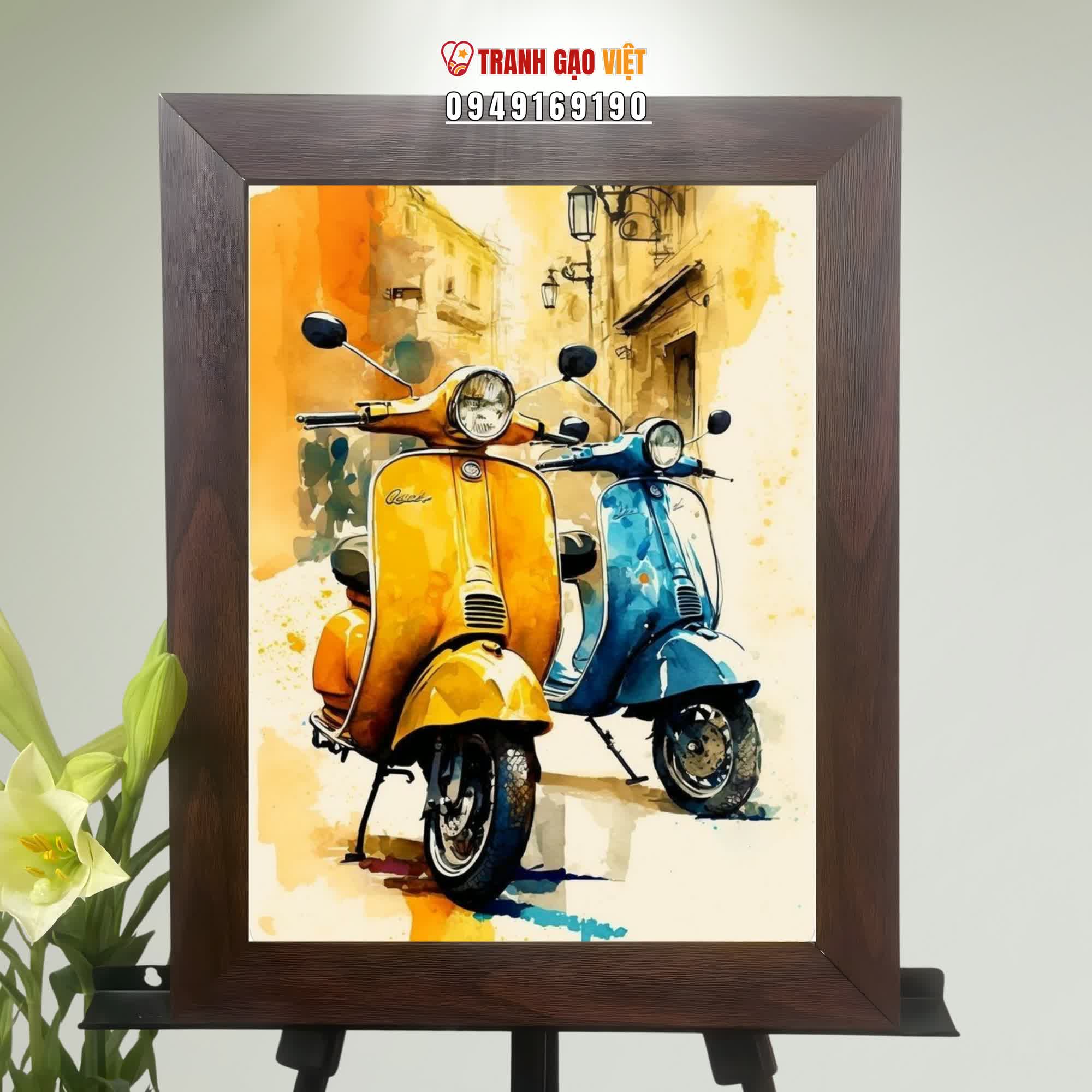 Tranh Gạo Đôi Bạn Yêu Xe - Tranh Nghệ Thuật - Tranh Tặng Quà - Tranh Thủ Công