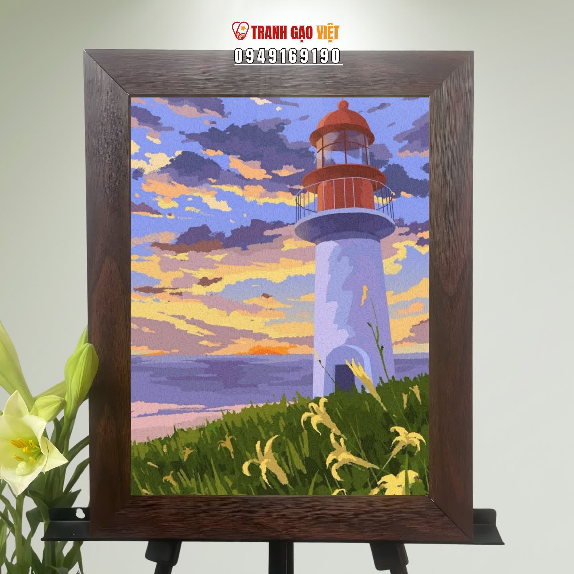 Tranh Gạo Hải Đăng Chiều Tà - Tranh Nghệ Thuật - Tranh Tặng Quà - Tranh Thủ Công