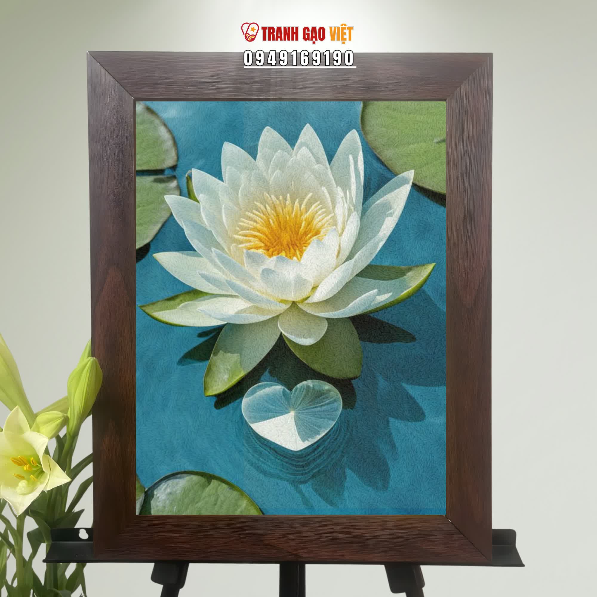 Tranh Gạo Hoa Sen Trắng - Tranh Nghệ Thuật - Tranh Tặng Quà - Tranh Thủ Công