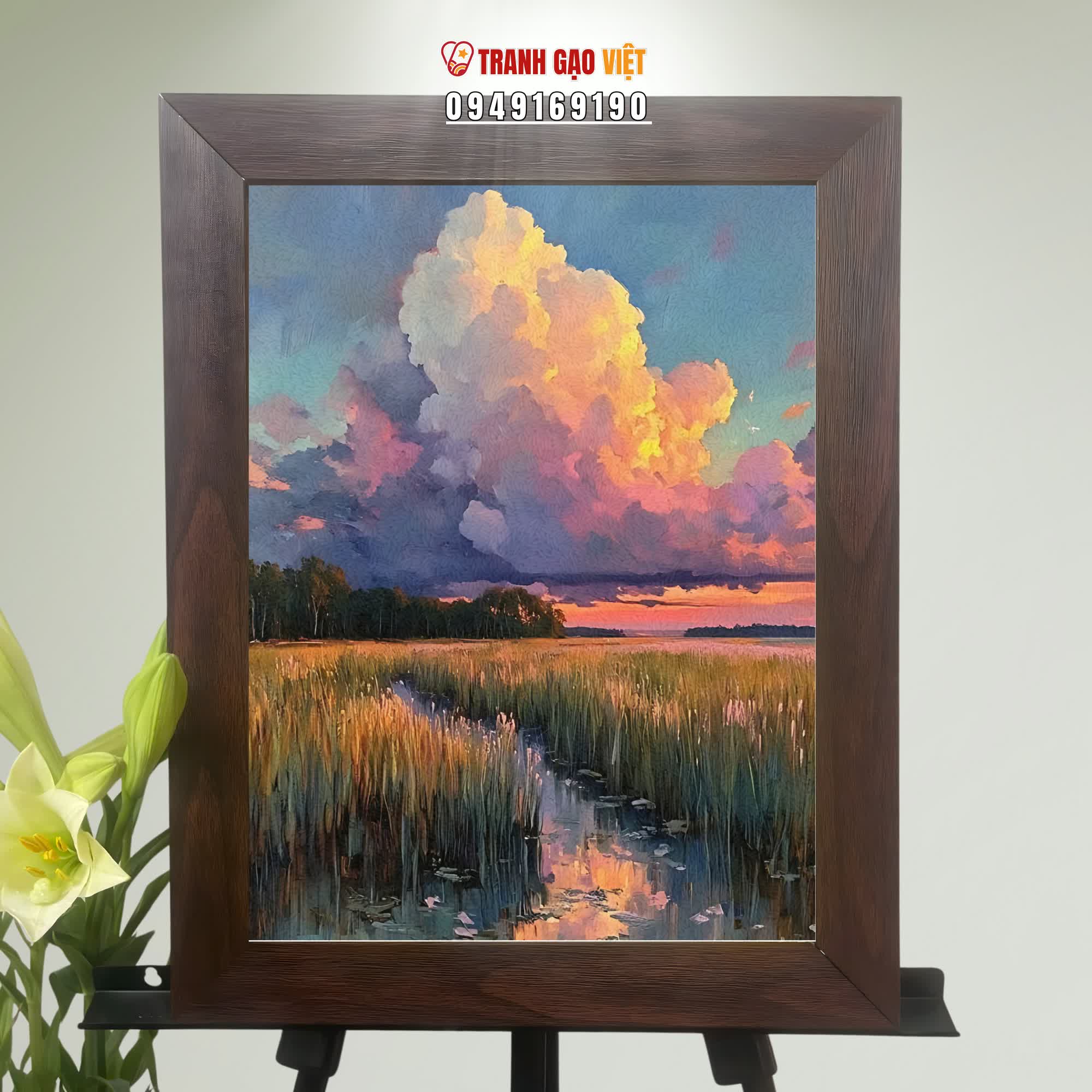 Tranh Gạo Hoàng Hôn Ở Đây - Tranh Nghệ Thuật - Tranh Tặng Quà - Tranh Thủ Công