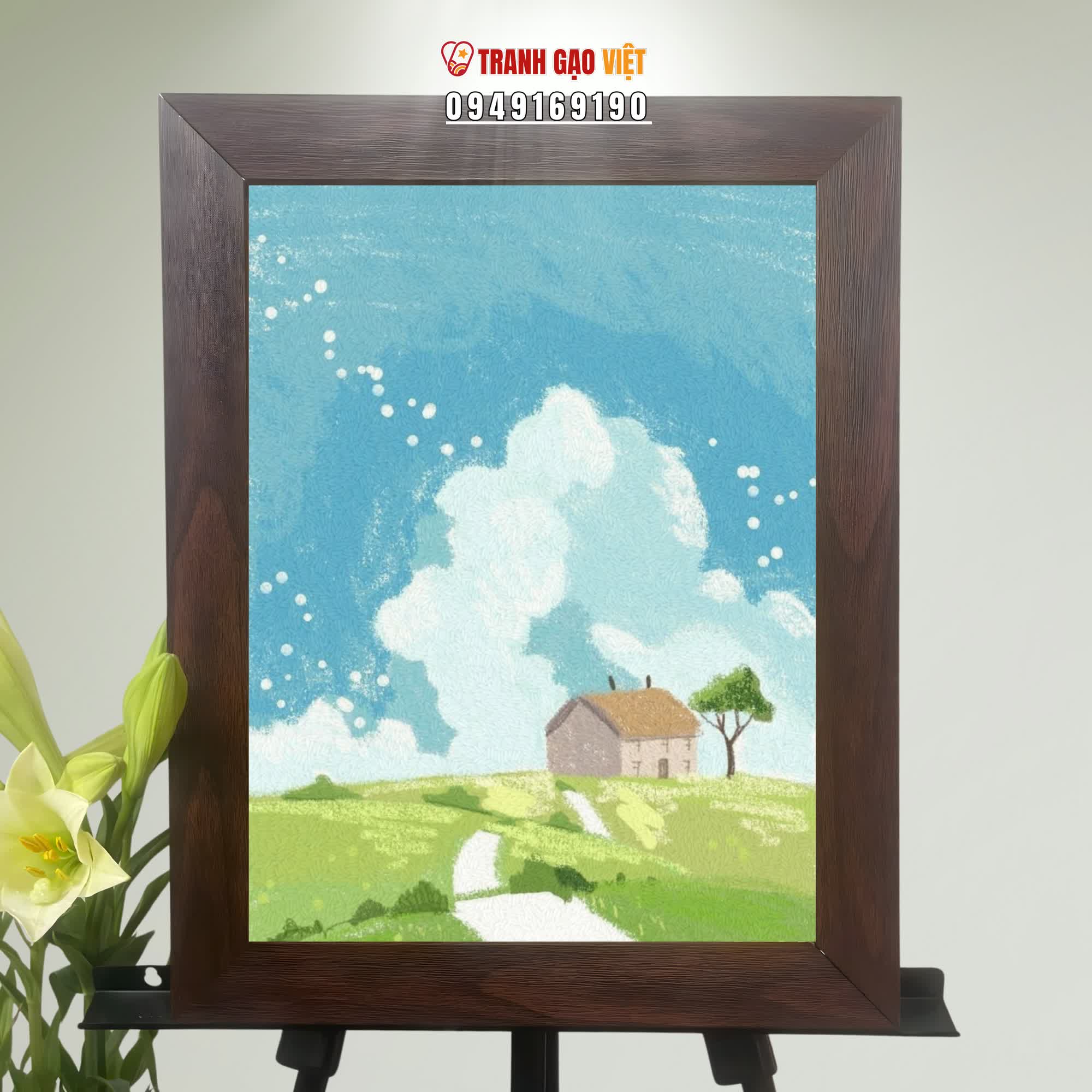 Tranh Gạo Ngôi Nhà của Ký Ức - Tranh Nghệ Thuật - Tranh Tặng Quà - Tranh Thủ Công