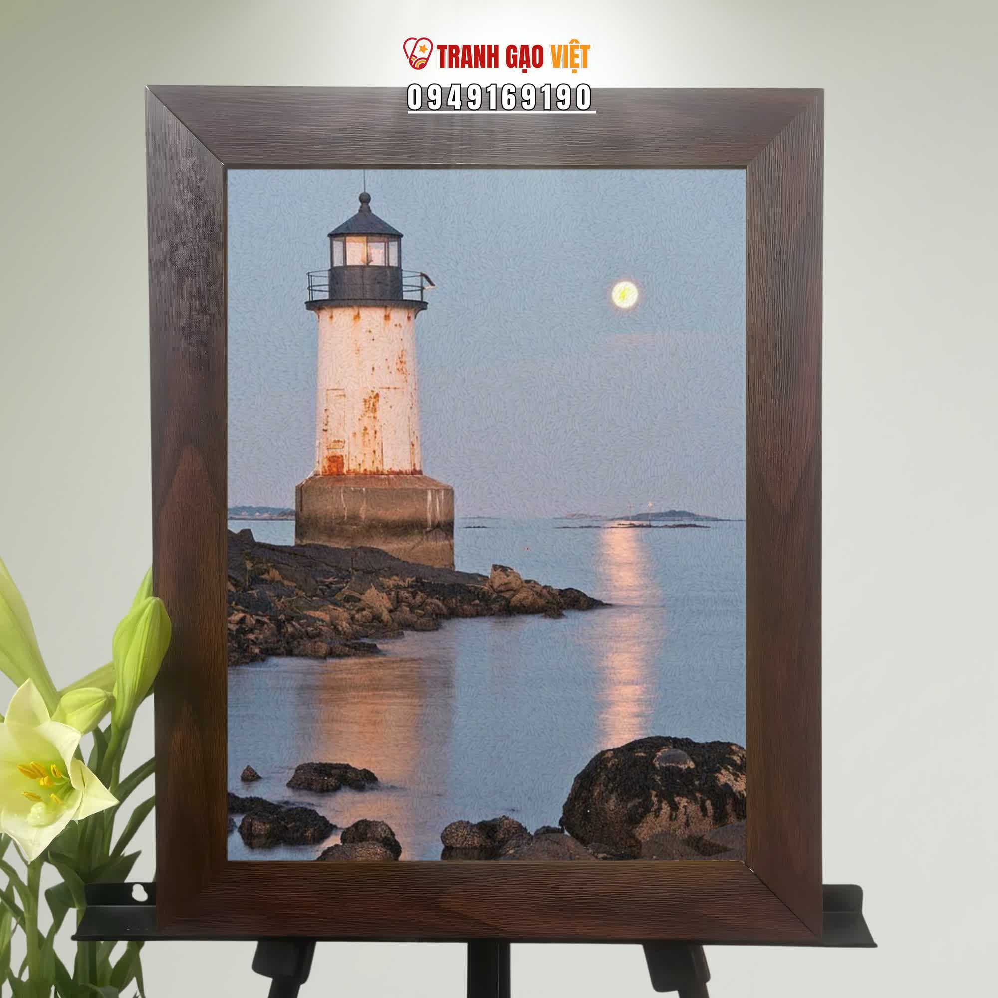 Tranh Gạo Ngọn Hải Đăng - Tranh Nghệ Thuật - Tranh Tặng Quà - Tranh Thủ Công