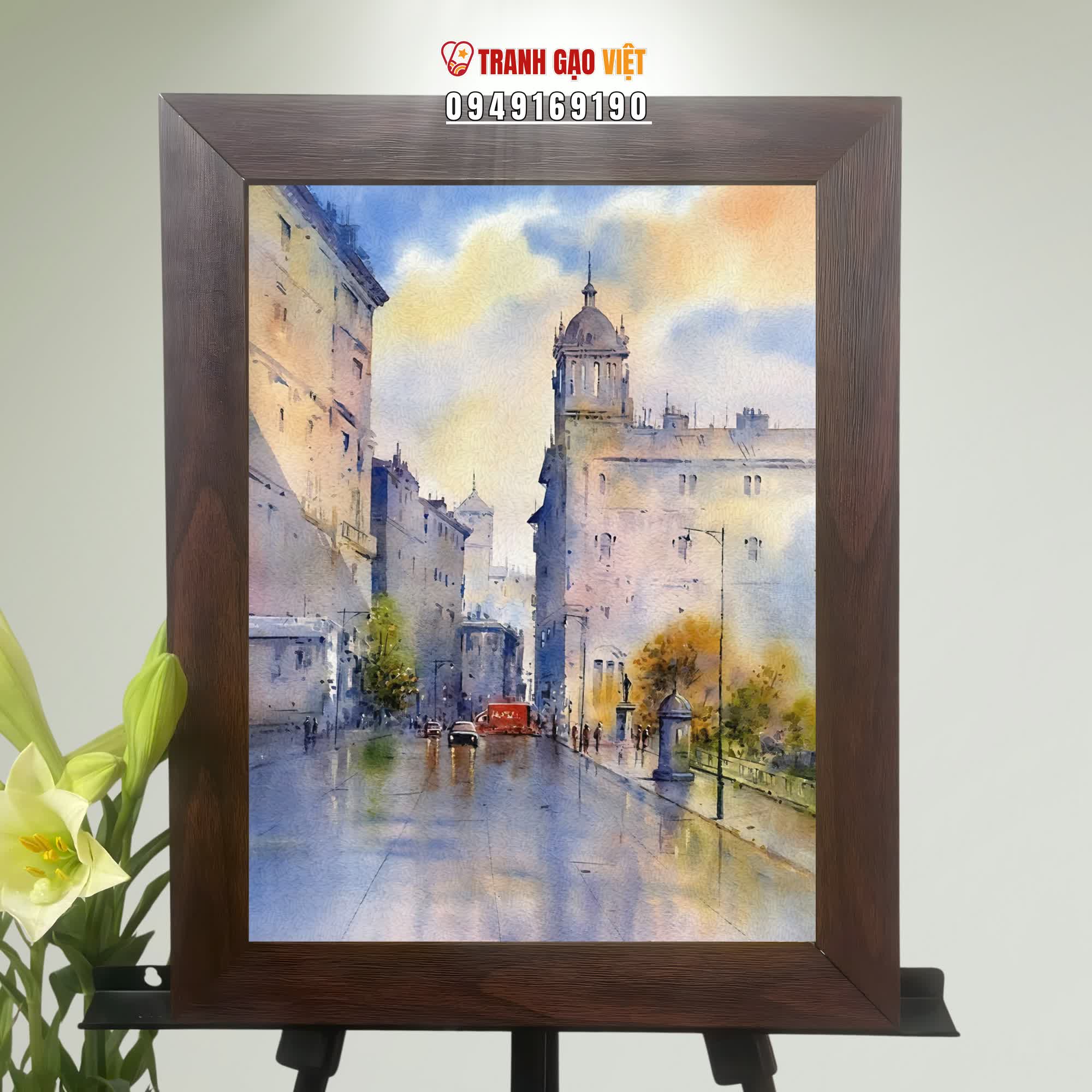 Tranh Gạo Màu Thành Phố Đông Âu - Tranh Nghệ Thuật - Tranh Tặng Quà - Tranh Thủ Công