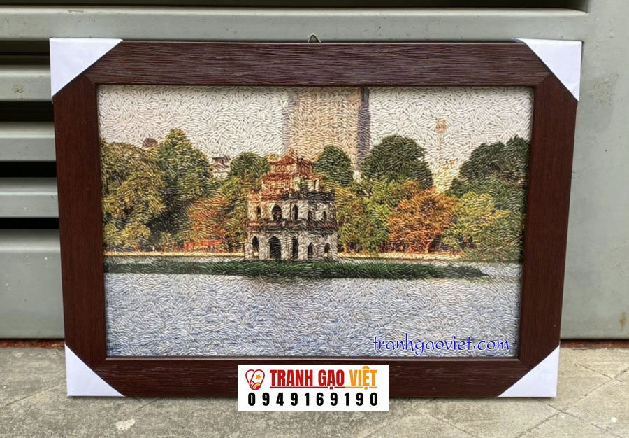 Tranh gạo màu Tháp Rùa khổ nhỏ