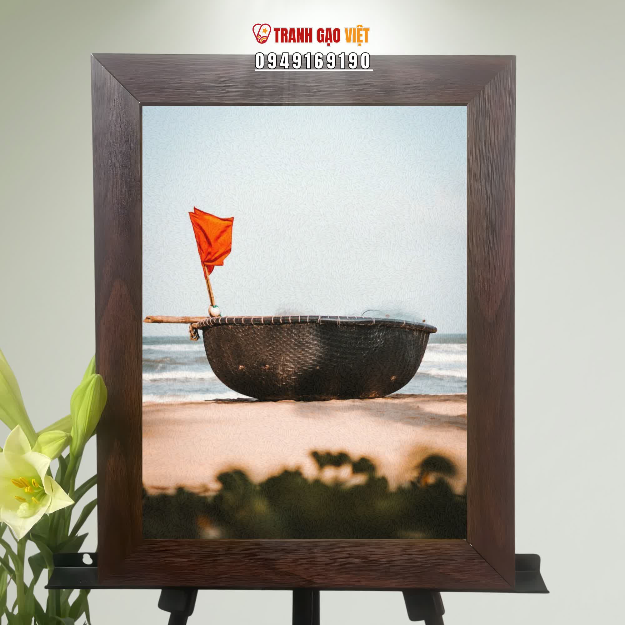 Tranh Gạo Thuyền Thúng - Tranh Nghệ Thuật - Tranh Tặng Quà - Tranh Thủ Công