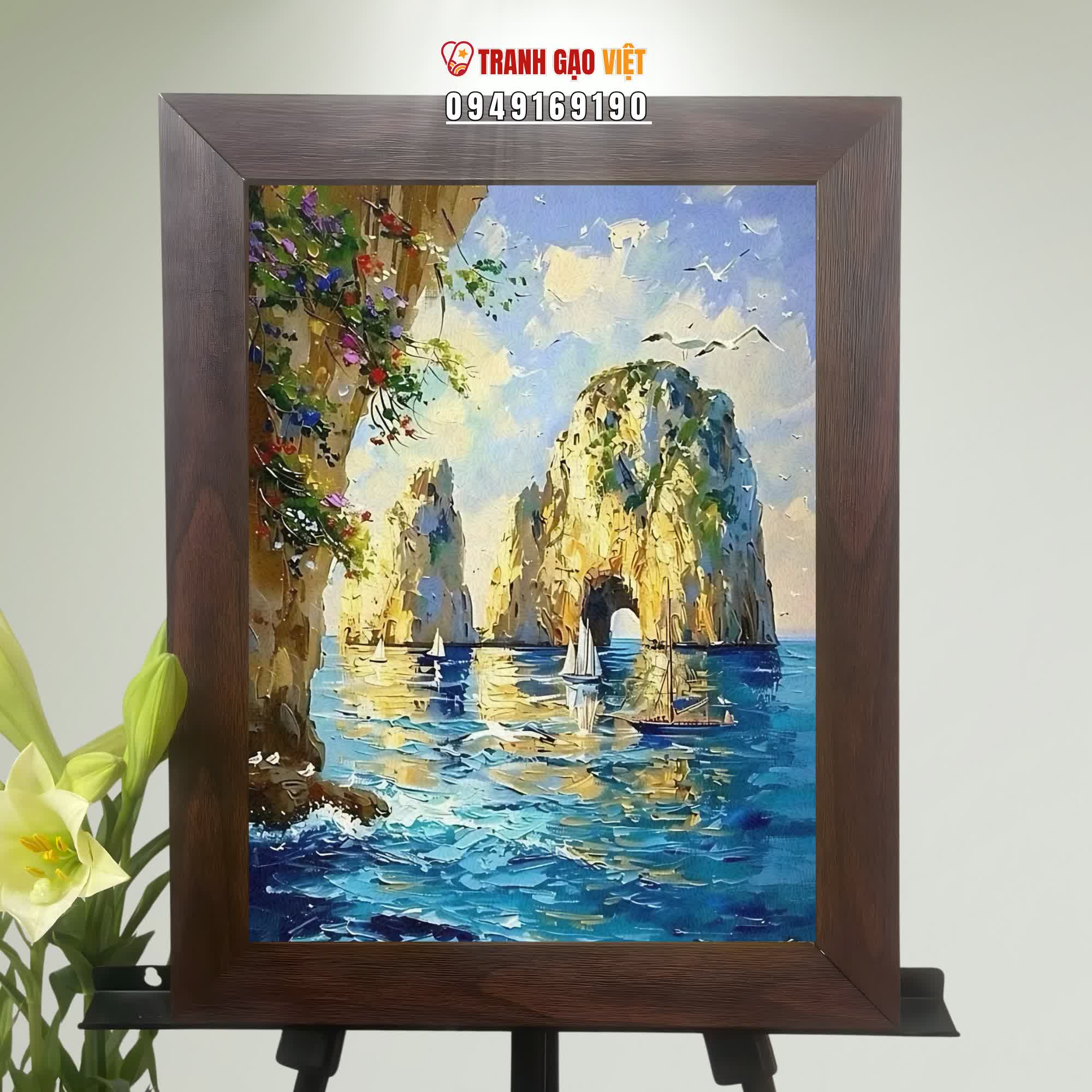 Tranh Gạo Vịnh Xanh - Tranh Nghệ Thuật - Tranh Tặng Quà - Tranh Thủ Công