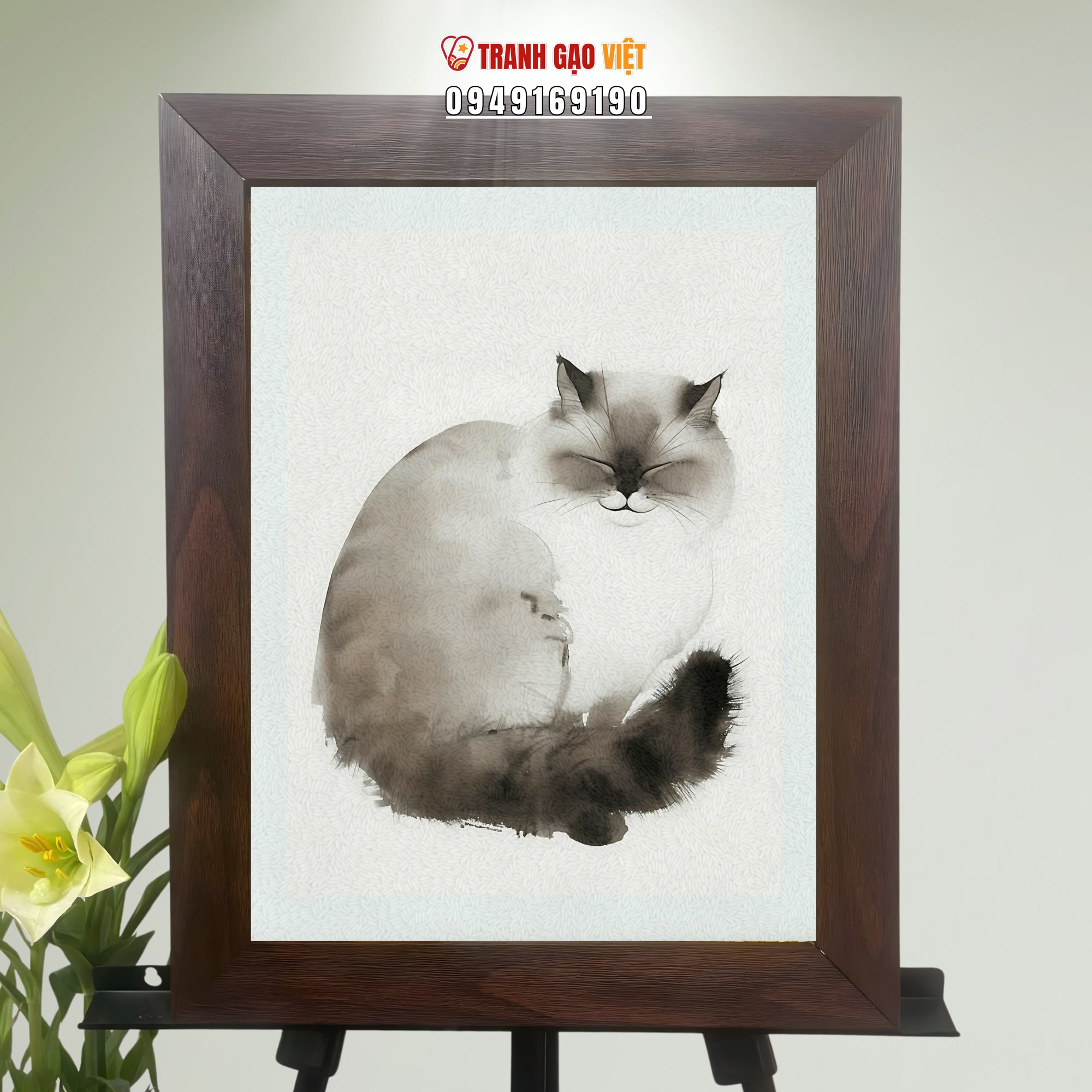 Tranh Gạo Mèo Đáng Yêu - Tranh Nghệ Thuật - Tranh Tặng Quà - Tranh Thủ Công