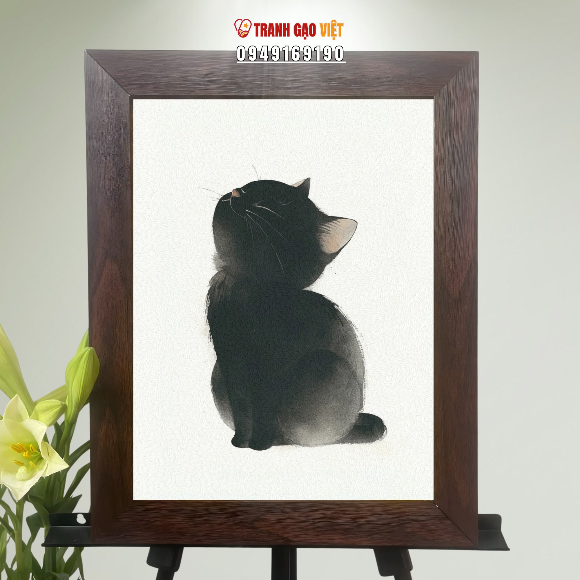 Tranh Gạo Mèo Đen Nhỏ - Tranh Nghệ Thuật - Tranh Tặng Quà - Tranh Thủ Công