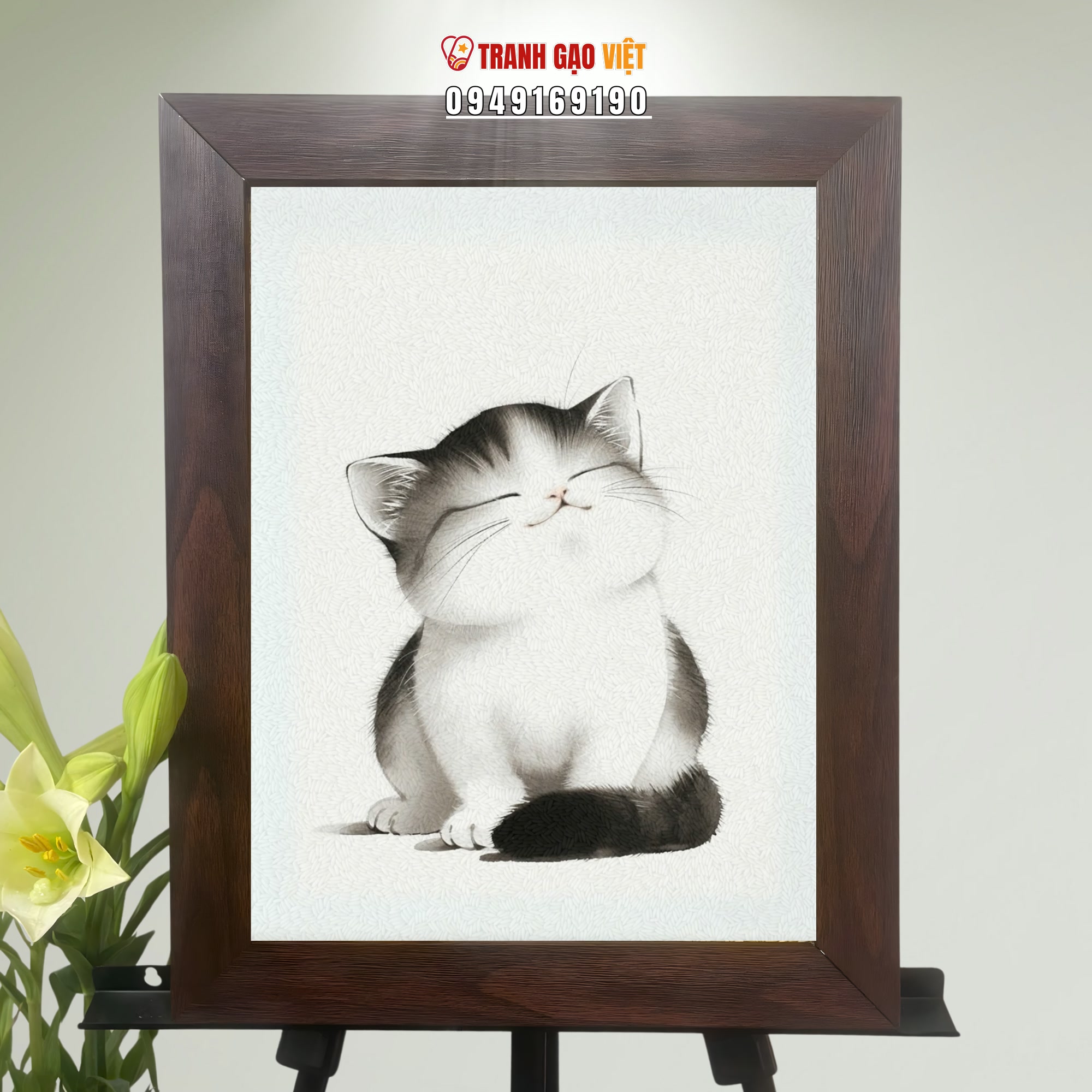 Tranh Gạo Mèo Muốn Nựng - Tranh Nghệ Thuật - Tranh Tặng Quà - Tranh Thủ Công