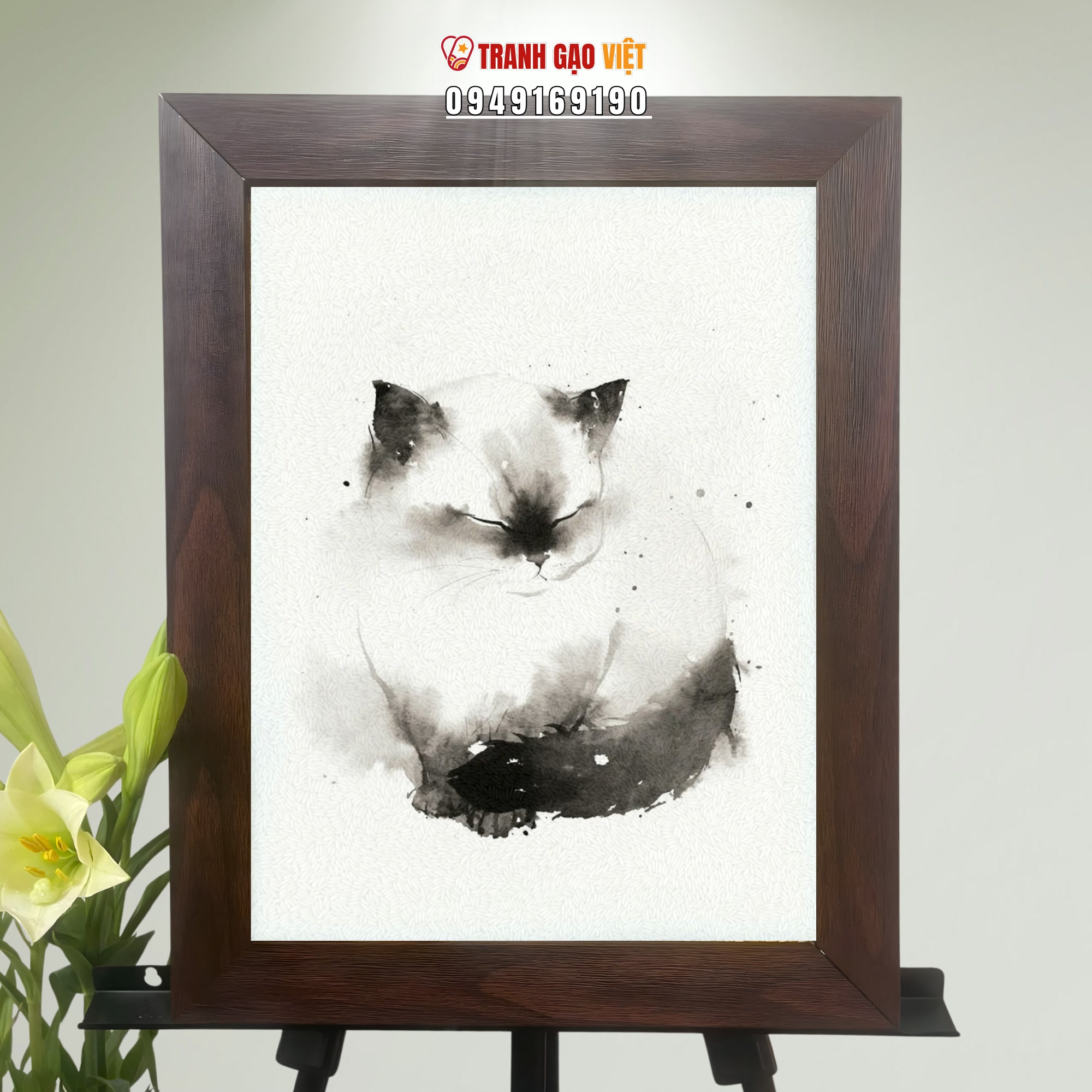 Tranh Gạo Mèo Ngoan - Tranh Nghệ Thuật - Tranh Tặng Quà - Tranh Thủ Công