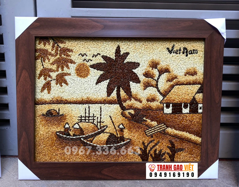 Tranh gạo phong cảnh sông nước